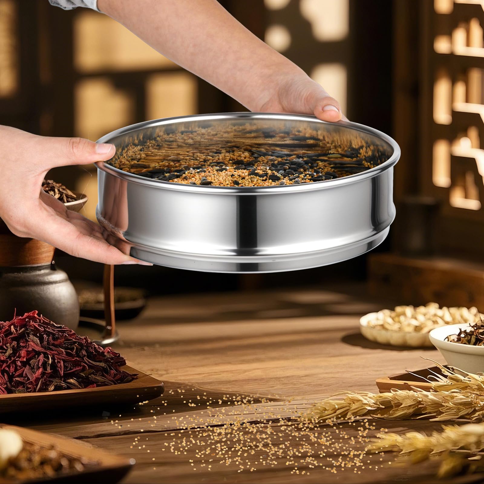 Safe: The aperture test sieve screen is tight and flat, has a smooth and hemmed edge, can not hurt your hands. All the same diameter different mesh sieves can stack on each other