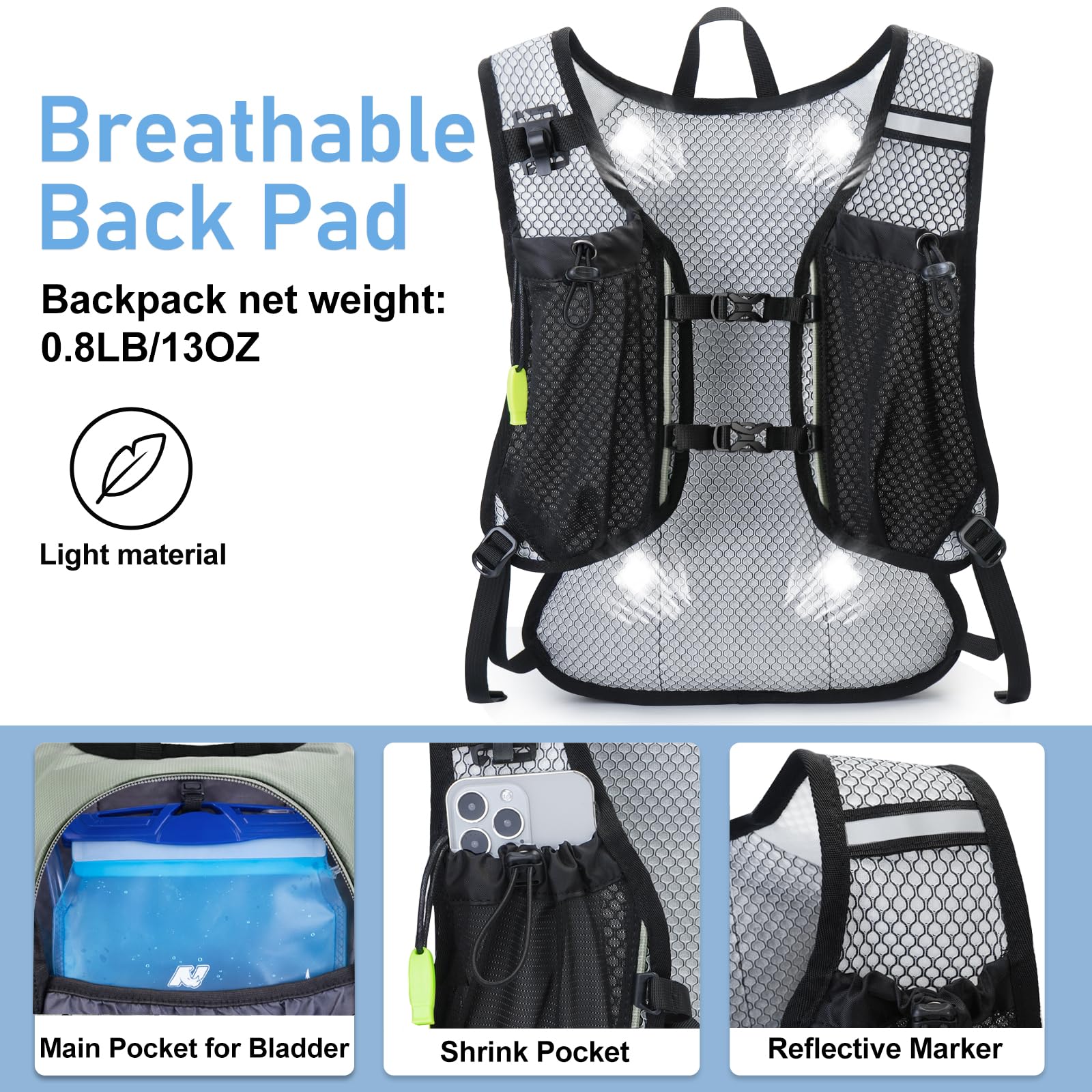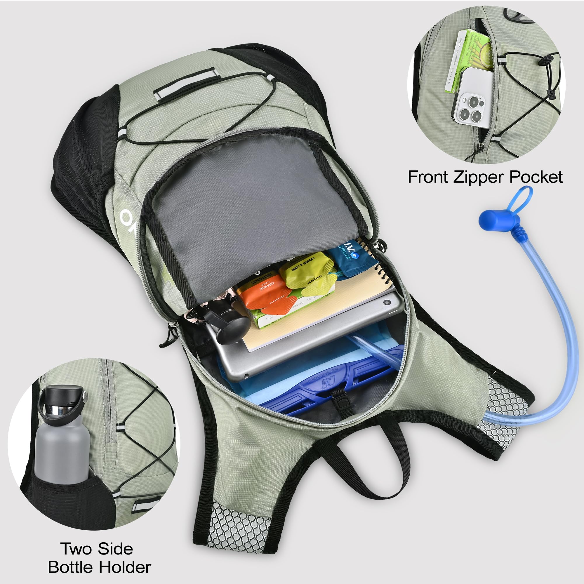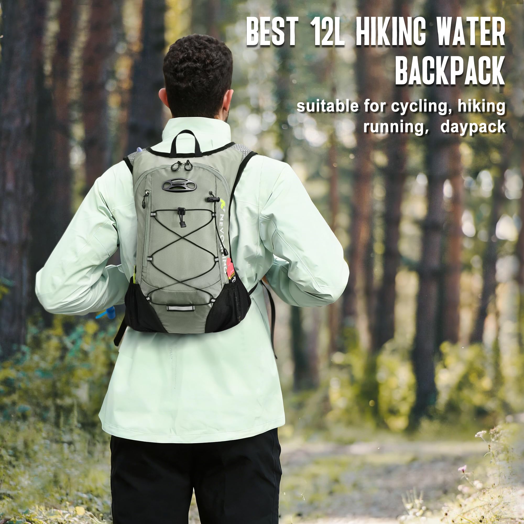 【Lightweight 12 L Hydration Backpack】: Super lightweight 8.5 oz hydration pack backpack with 2 L water bladder. Waterproof and tear-resistant fabric, PU coated nylon hydration pack bears 25 lbs