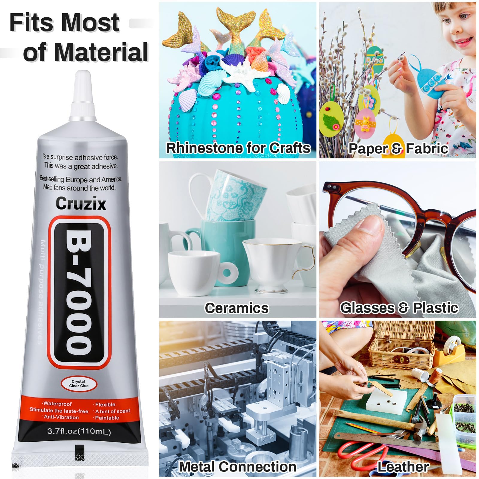 𝐌𝐮𝐥𝐭𝐢-𝐅𝐮𝐧𝐜𝐭𝐢𝐨𝐧 𝐁𝟕𝟎𝟎𝟎 𝐀𝐝𝐡𝐞𝐬𝐢𝐯𝐞 𝐆𝐥𝐮𝐞 B7000 Glue can permanently adhere a variety of materials, which is great self-leveling adhesive for jewelry making, acrylic nails art, toys repair, phones screen, tablet, small electronic components (like Bluetooth headsets), metal, glass, leather, rubber, fiber, paper, ceramics, wood, cloth, textile, nylon, PVC, leather, household uses and other crafts repair purposes. Allows Small Adhesive drops for fine, precise, controlled and no mess Applications.