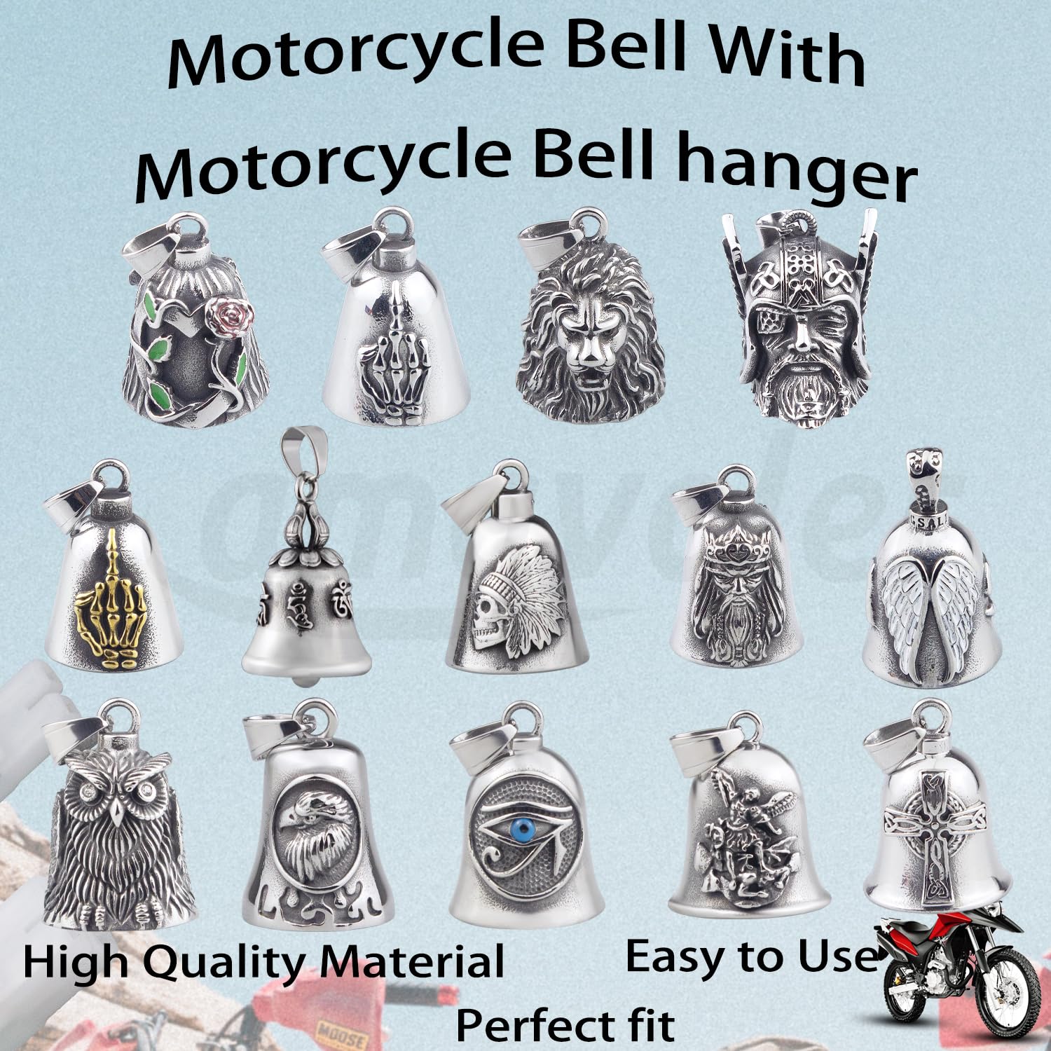 The bell motorcycle using high quality stainless steel titanium steel material, not easy to change color deformation, corrosion resistance, can use for a long time.
