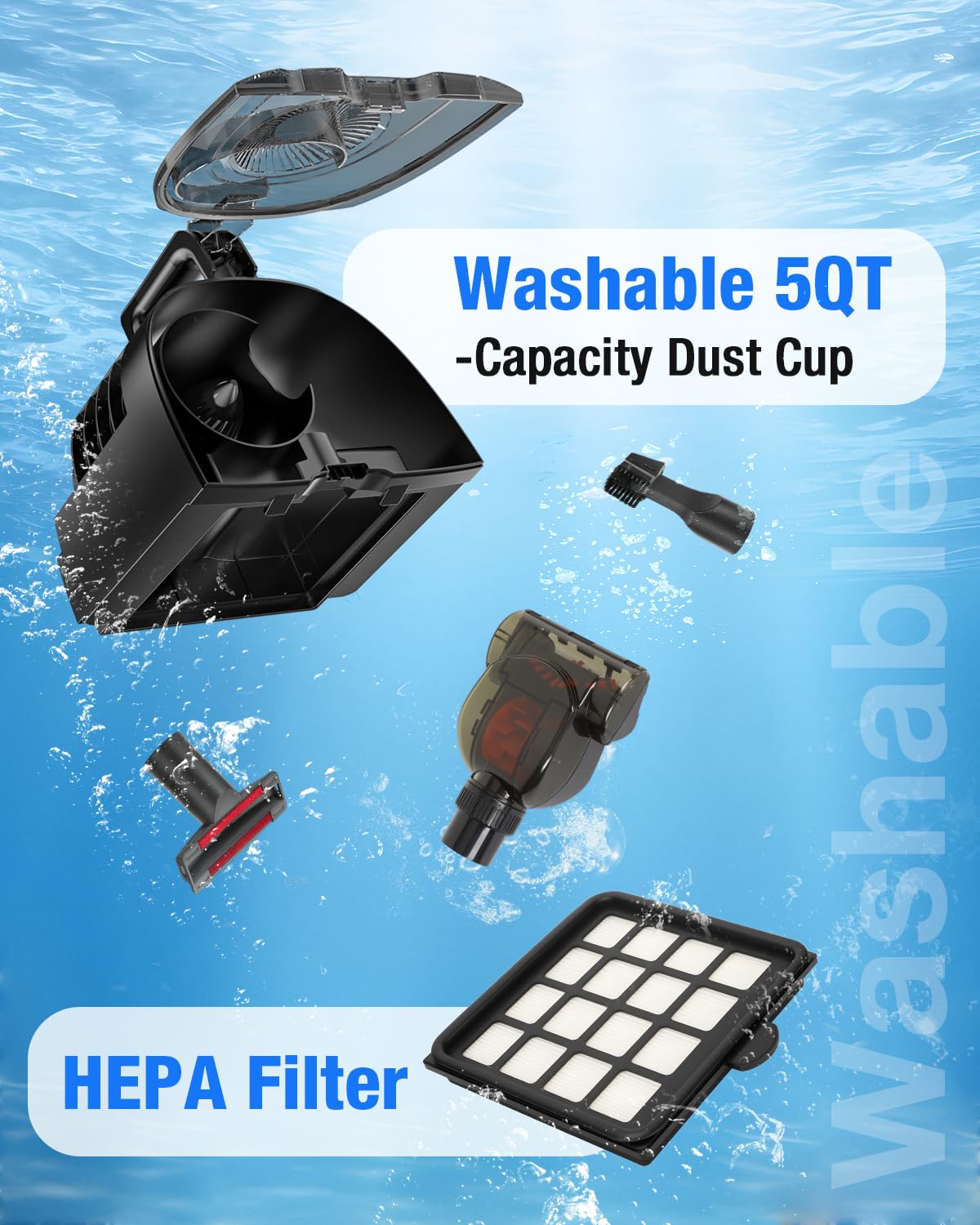 Zefiro Canister Vacuum Cleaner, 40Kpa 1600W Bagless Vacuum Cleaner, , H13 HEPA Filter, 5Qt Large Capacity, Lightweight Vacuum for Hard Floors, Carpet, Pet, Gray A20