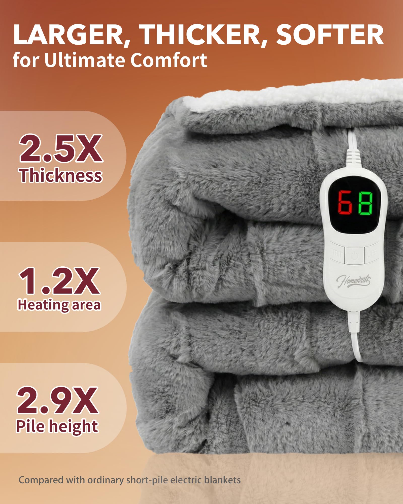 LARGER HEATING AREA: The heating wire used in the Homemate electric blanket is longer, so the heating area is larger and the heat distribution is more uniform.