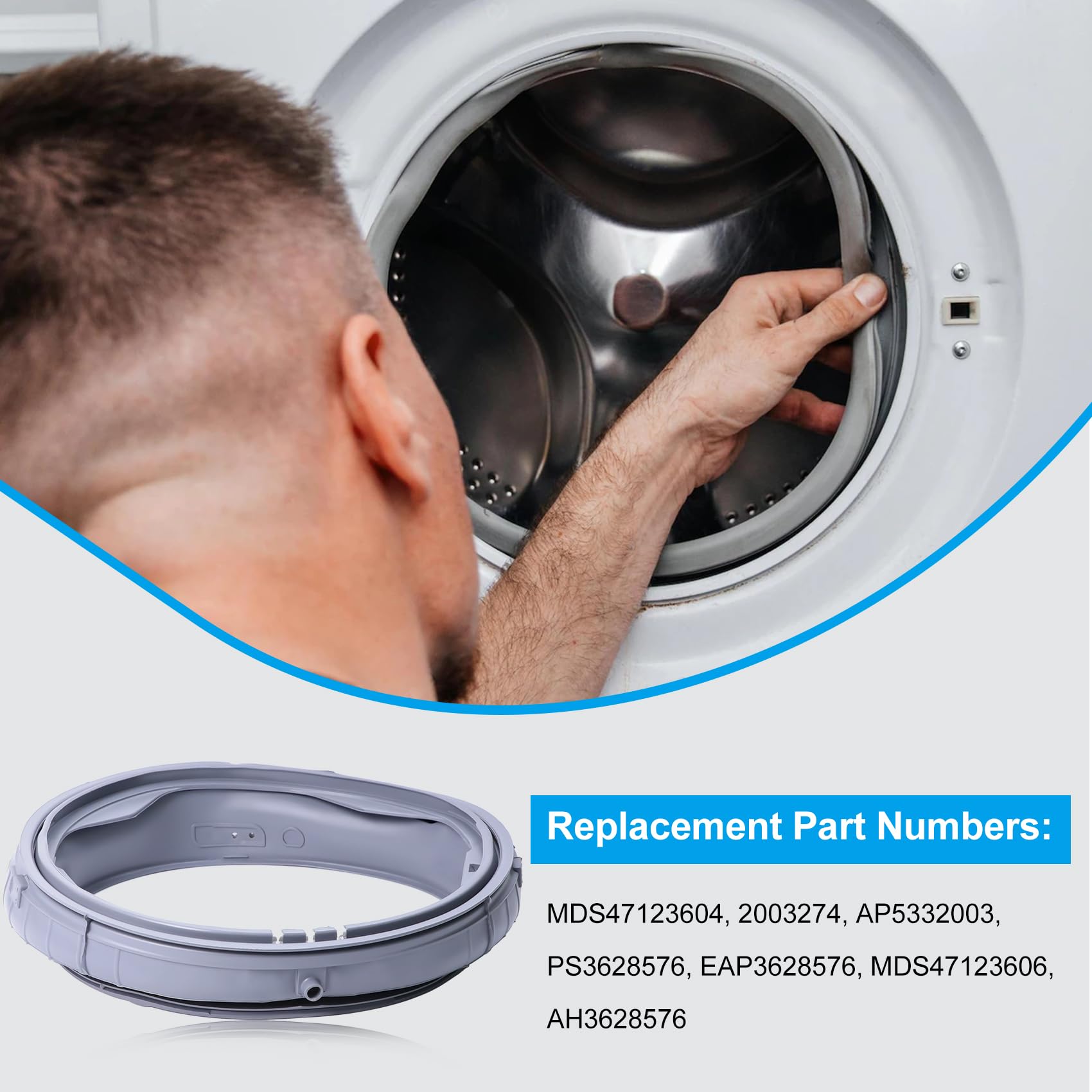 【OEM STANDARD】This washer door boot seal is manufactured in accordance with OE specifications. Meet or exceed OEM standards and can be directly installed. The snap and original washer door fit snugly; the seal gasket can form a seal between the wash tub and the door, effectively preventing leakage. (Replace Part Number: MDS47123604, 2003274, AP5332003, PS3628576, EAP3628576, MDS47123606, AH3628576)