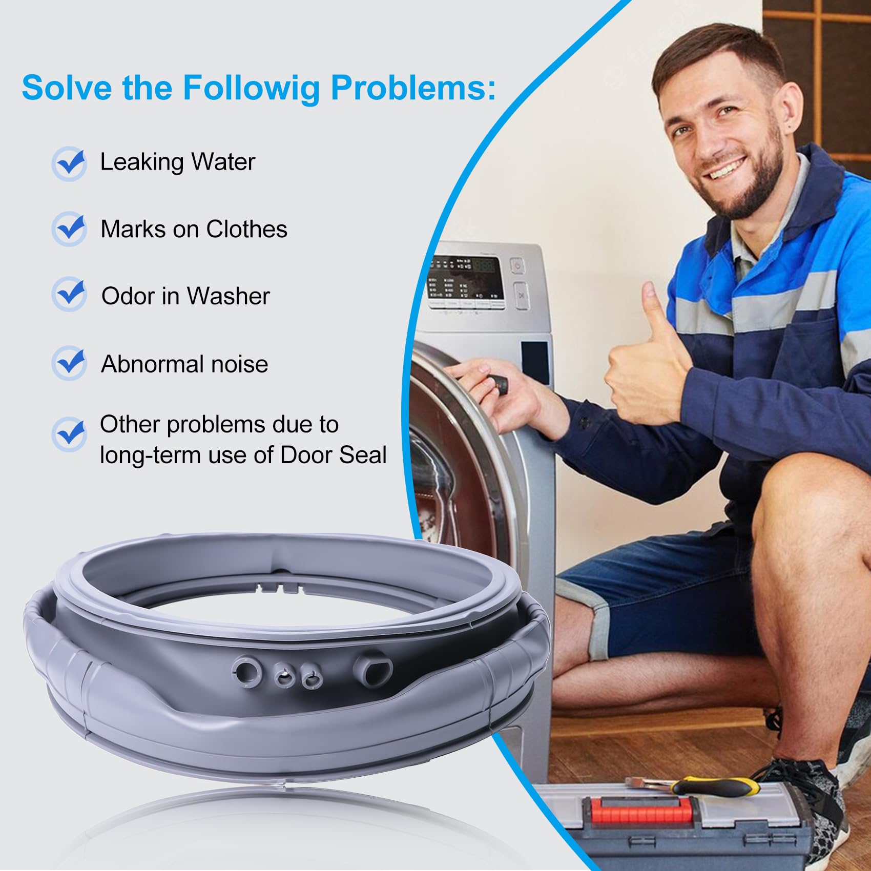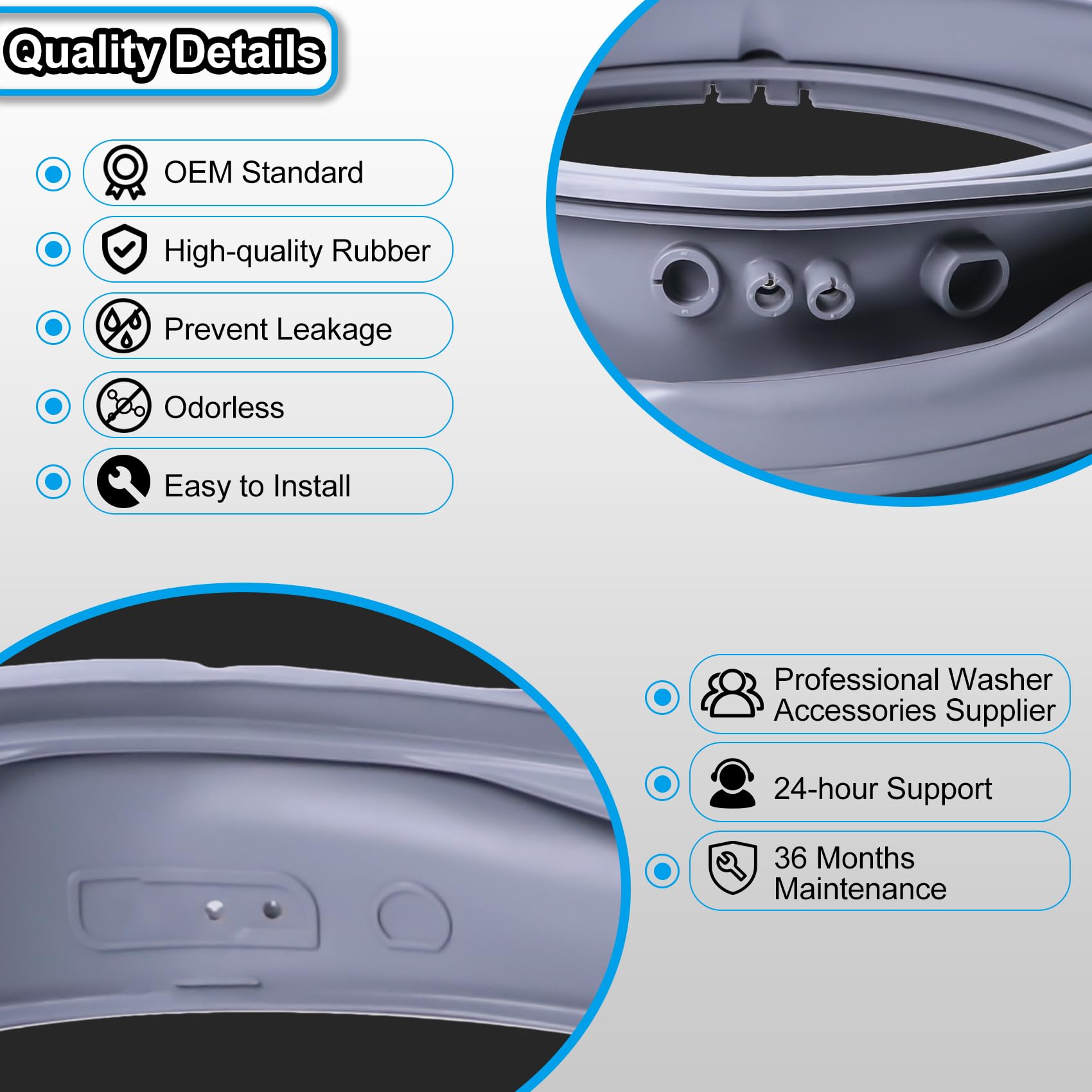 【UPGRADED QUALITY】 This washing machine door gasket can provide excellent performance and long service life. High-quality and durable environmentally friendly rubber material: guarantees high elasticity, high waterproofness, and no odor. Better material selection and surface treatment process than most similar products. Replace the old washer door diaphragm, get rid of laundry odors and leaks troubles!