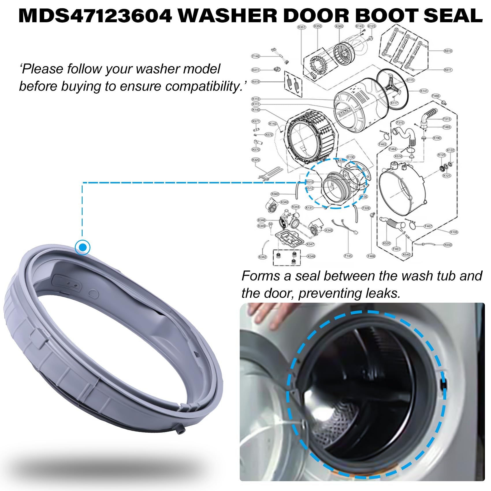 【EASY TO INSTALL】 Our washer door seal bellow is the same size as the original parts (MDS47123604), you can directly replace it yourself and finish it in 20 minutes! It saves you the time of changing back and forth, and also helps you save money. (Tips: The detailed replacement steps are in the description.)