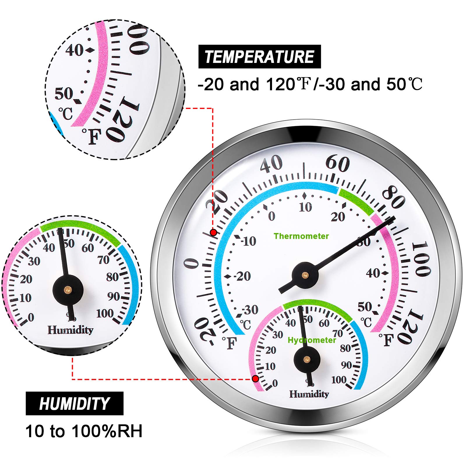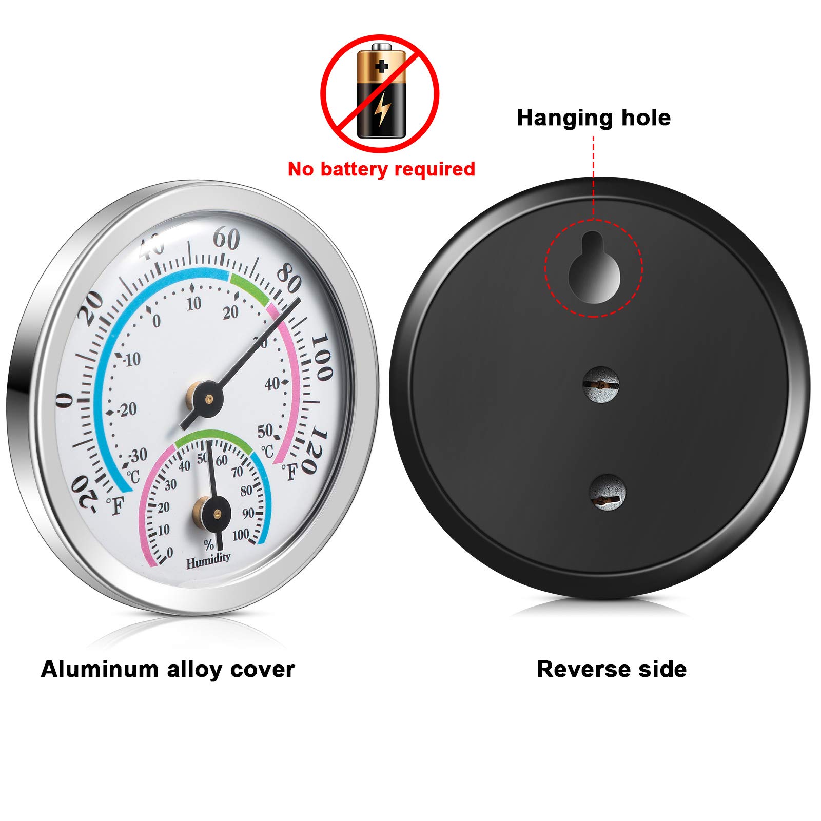 Reliable to Use: this humidity monitor gauge is made of aluminum alloy material with clear and large dial, easy to read the scale, accurate reading can help you monitor temperature and humidity instantly, the quality material makes it can be applied for a long time