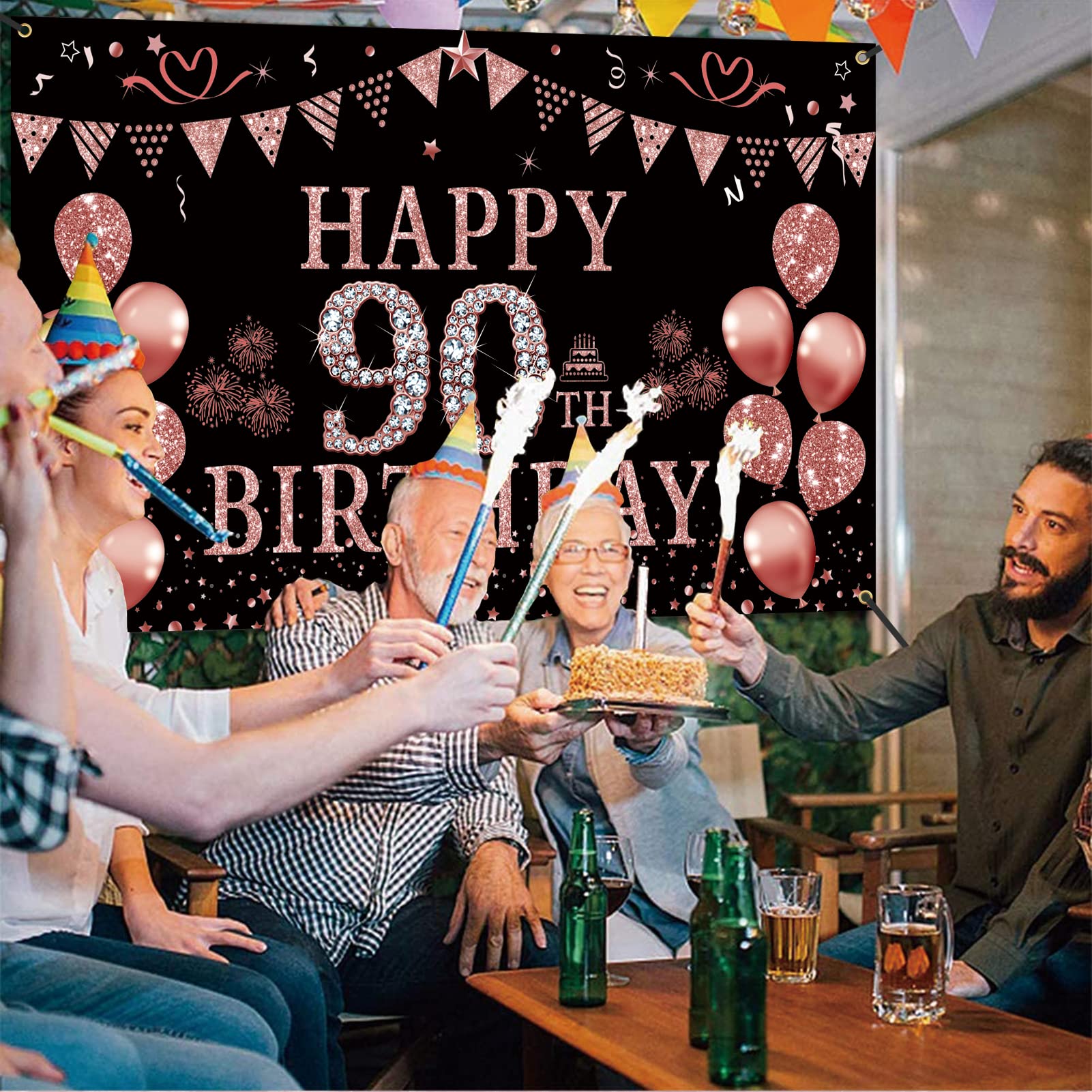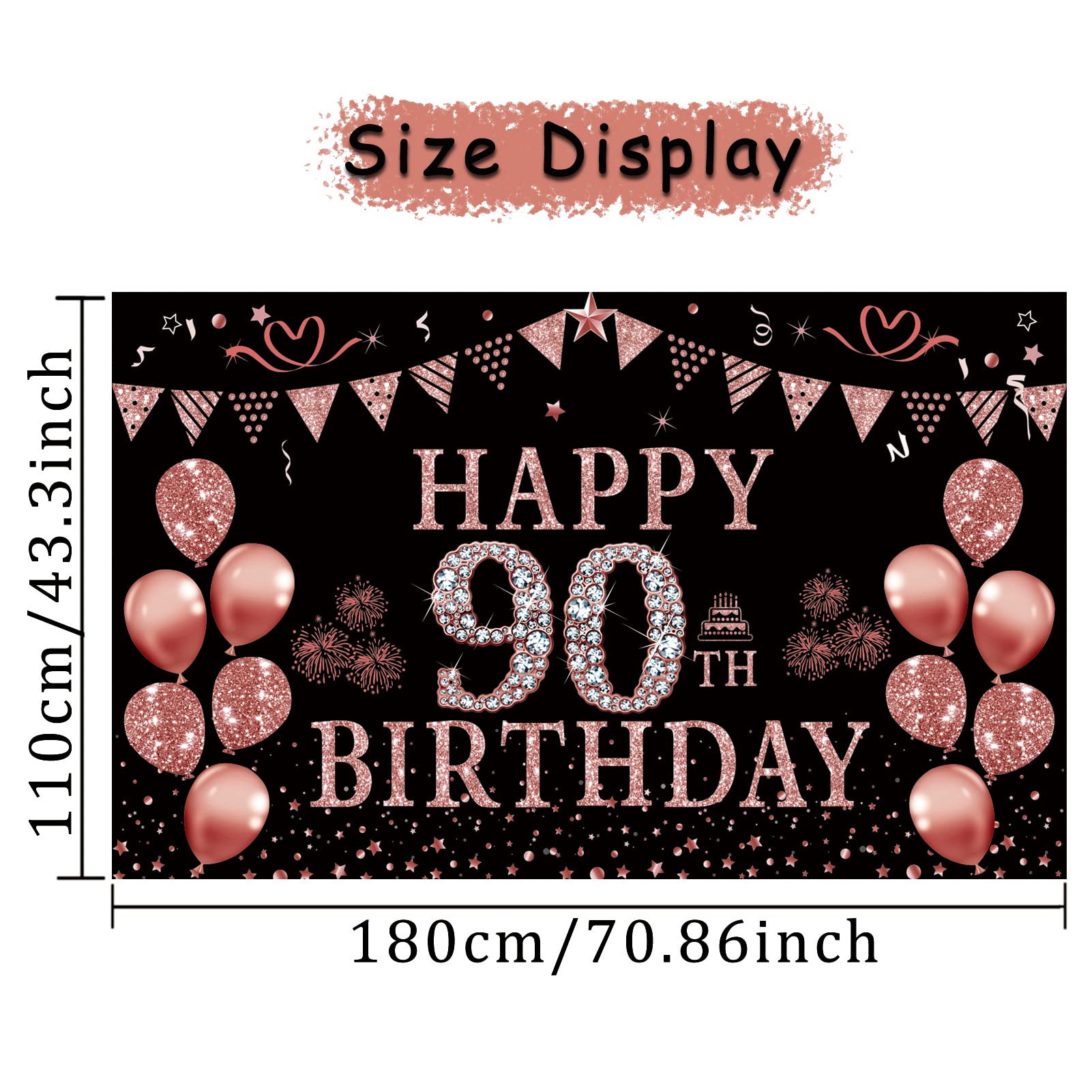 [Various Applications] - The Rose Gold birthday party backdrop is suitable for 90th birthday party banner decoration. It also can be used as wallpaper, curtain, backdrop for photo.