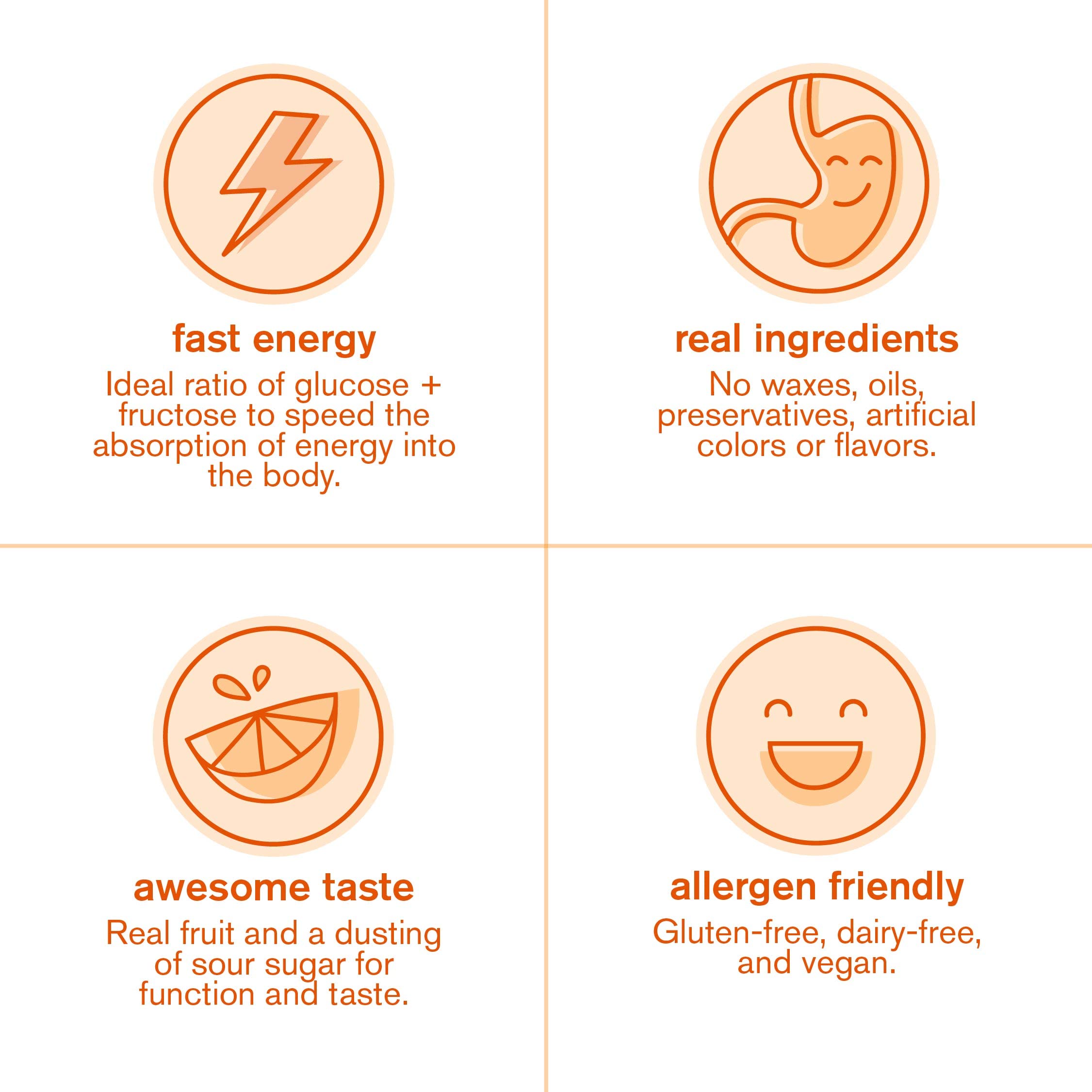 REAL ORANGES: Skratch Labs Energy Chews are made with real fruit, like sweet and tangy oranges, for a refreshing burst of flavor that tastes great and fuels your workout.