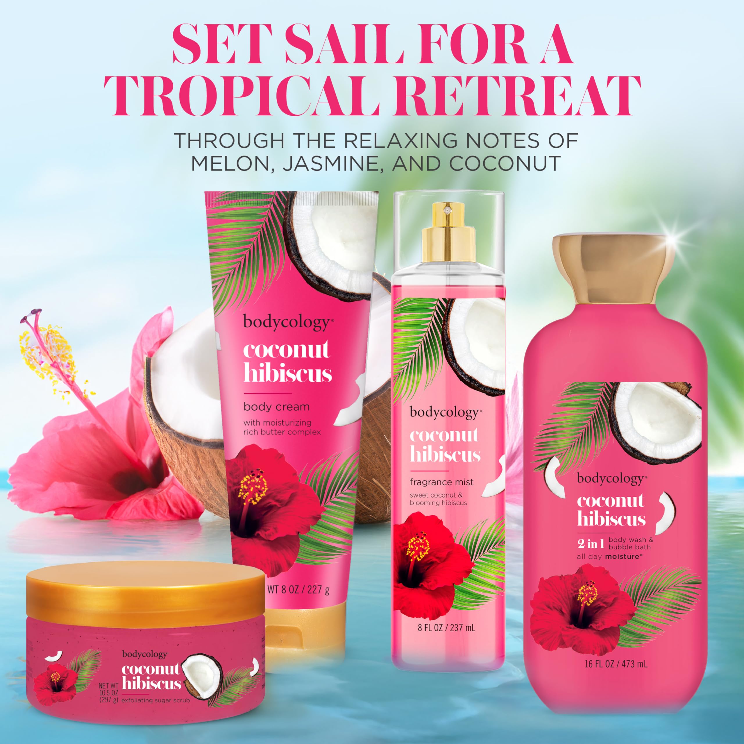 FLORAL & FRUITY SCENT: Sweet melon, blooming hibiscus, and coconut