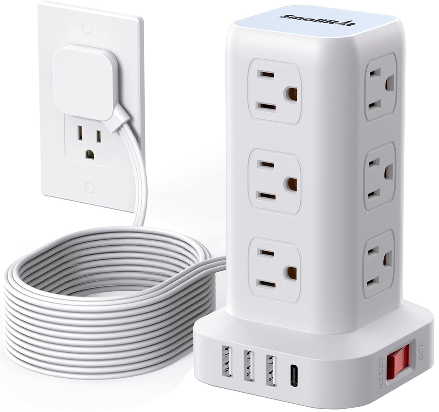 Space-Saving Tower Design: The 4-sided compact tower design helps organize and declutter your workspace, saving precious desk space. With 4 rubber feet at the bottom, the 6.5 ft extension cord stays firmly in place without slipping or sliding, creating a tidy, efficient environment