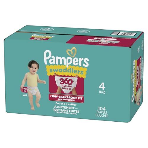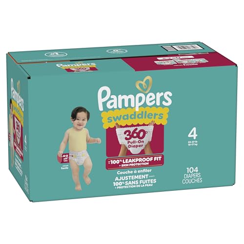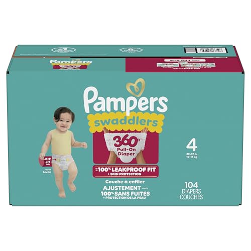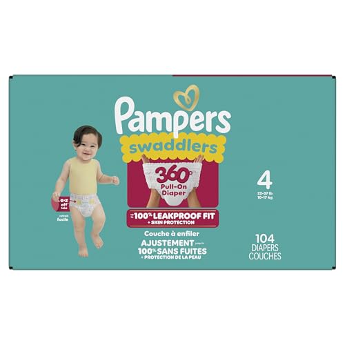 The Pampers Swaddlers 360° comfy, dry protection you know and love just got updated—with E-Z Off tabs for even easier changes. Featuring ultrasoft absorbent layers and Dual-Leak Guard Barriers that help protect where leaks happen most, these diapers provide up to 100% leakproof skin protection for your little one! From the #1 Pediatrician Recommended Brand*, Pampers Swaddlers 360° are designed to support your toddler’s movement from crawling age to standing age with a 360-degree stretchy waistband. The new EZ-off tabs make changes stress-free and mess-free—whether your little one is lying down or standing up—just tab off, wrap up, and pull on a fresh diaper pant. Swaddlers 360° toddler diapers offer trusted protection you can count on: they’re hypoallergenic, dermatologically tested, and free of parabens and latex. Plus, Dual LeakGuard Barriers and a blowout barrier help prevent up to 100% of leaks—even blowouts! To find your baby’s ideal Comfy Dry Fit, just measure by weight and reference our available baby diaper sizes: • Size 3 diapers (16–28 lbs.) • Size 4 diapers (22–37 lbs.) • Size 5 diapers (27+ lbs.) • Size 6 diapers (35+ lbs.) • Size 7 diapers (41+ lbs.) Pair Pampers Swaddlers 360° with Pampers Sensitive Baby Wipes to help make changes quick, easy, and gentle on your baby’s skin. *Based on 2021 survey of U.S. and Canadian pediatriciansSwaddlers 360° pull on diapers offer our best skin protection for your baby! The waistband stretches comfortably around your baby's waist and adapts to their every move for a soft and comfy fit — no tape needed.
