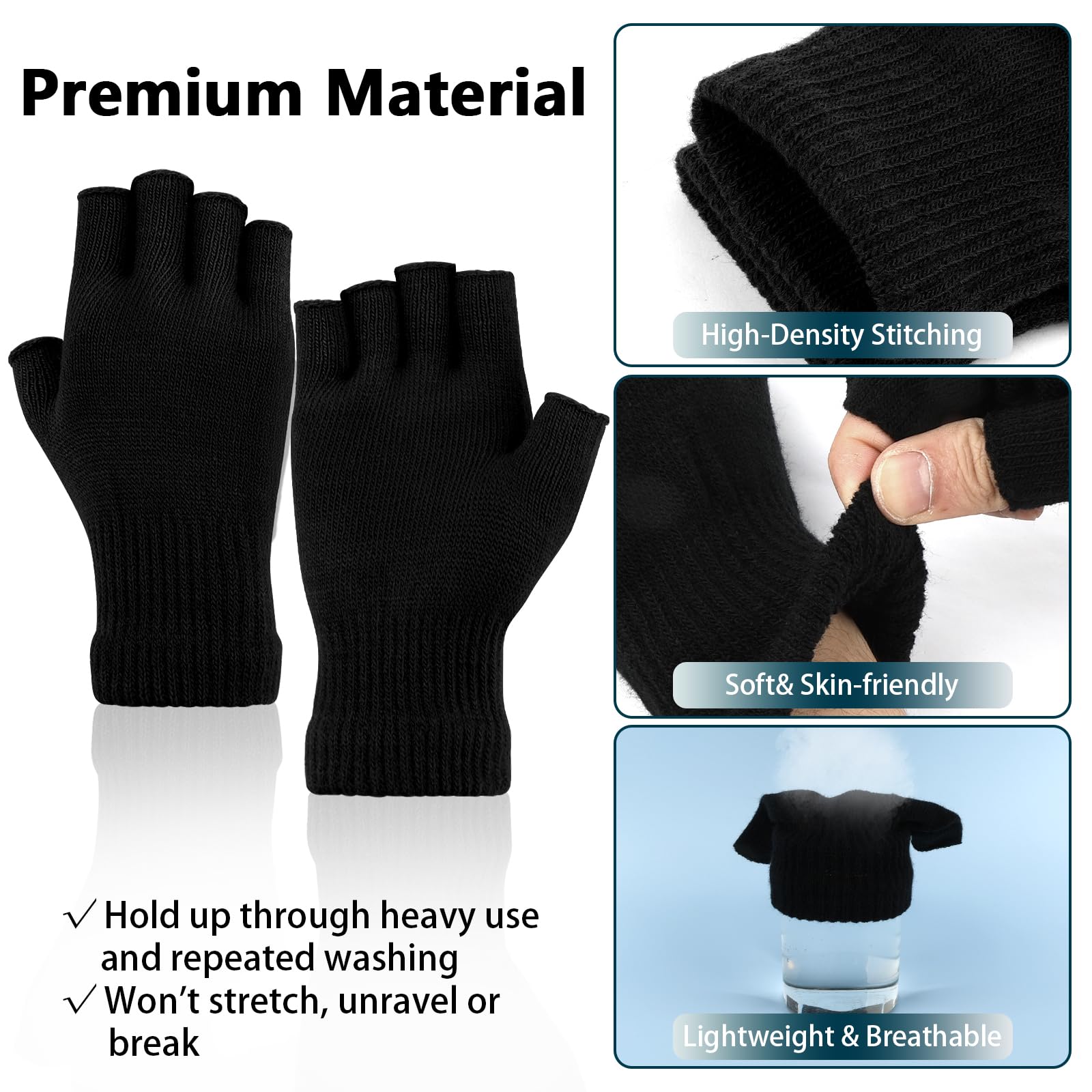 【4 Pairs Set】Includes 4 pairs of fingerless gloves, which are convenient for daily replacement or sharing with family and friends, meeting various needs such as winter commuting, office, and outdoor activities