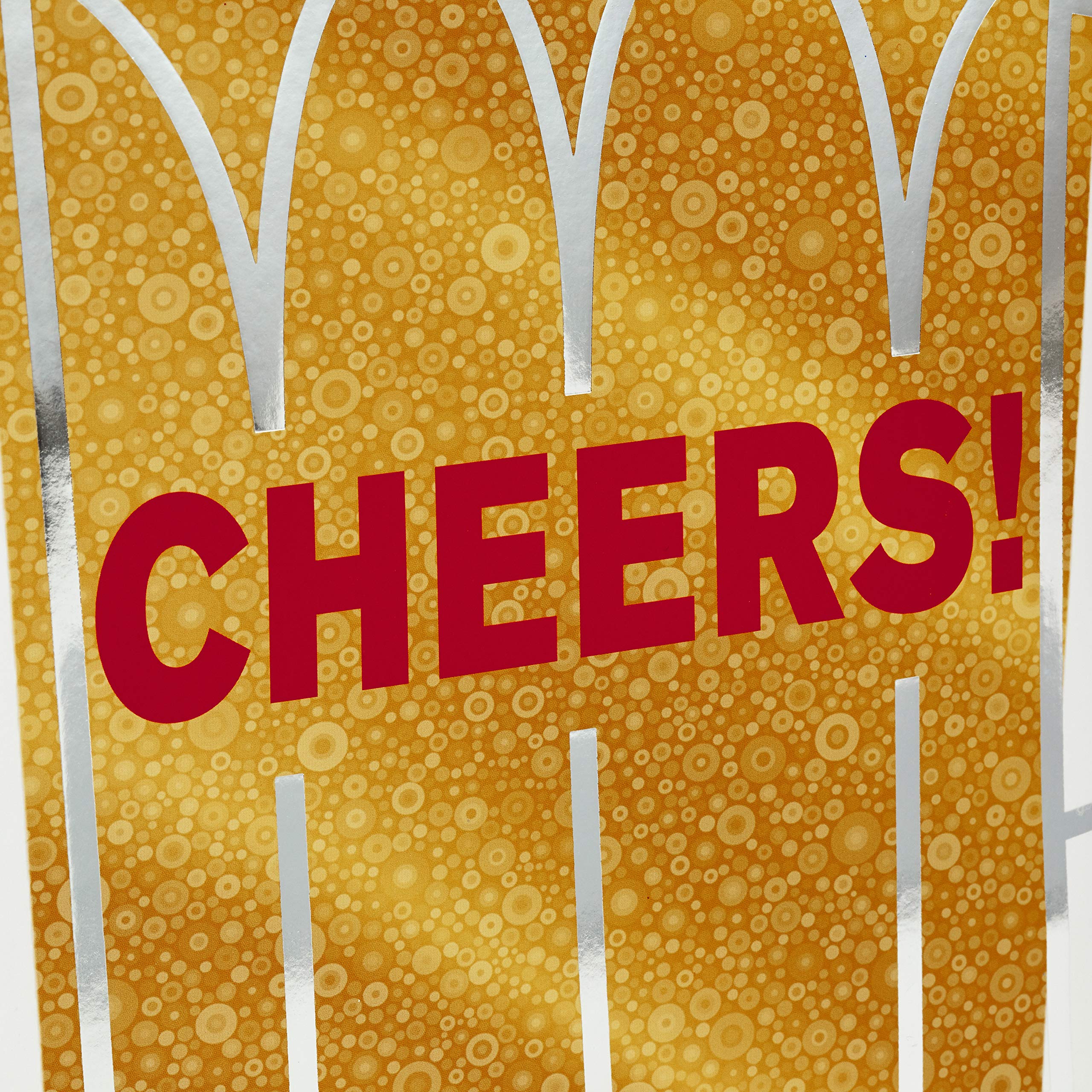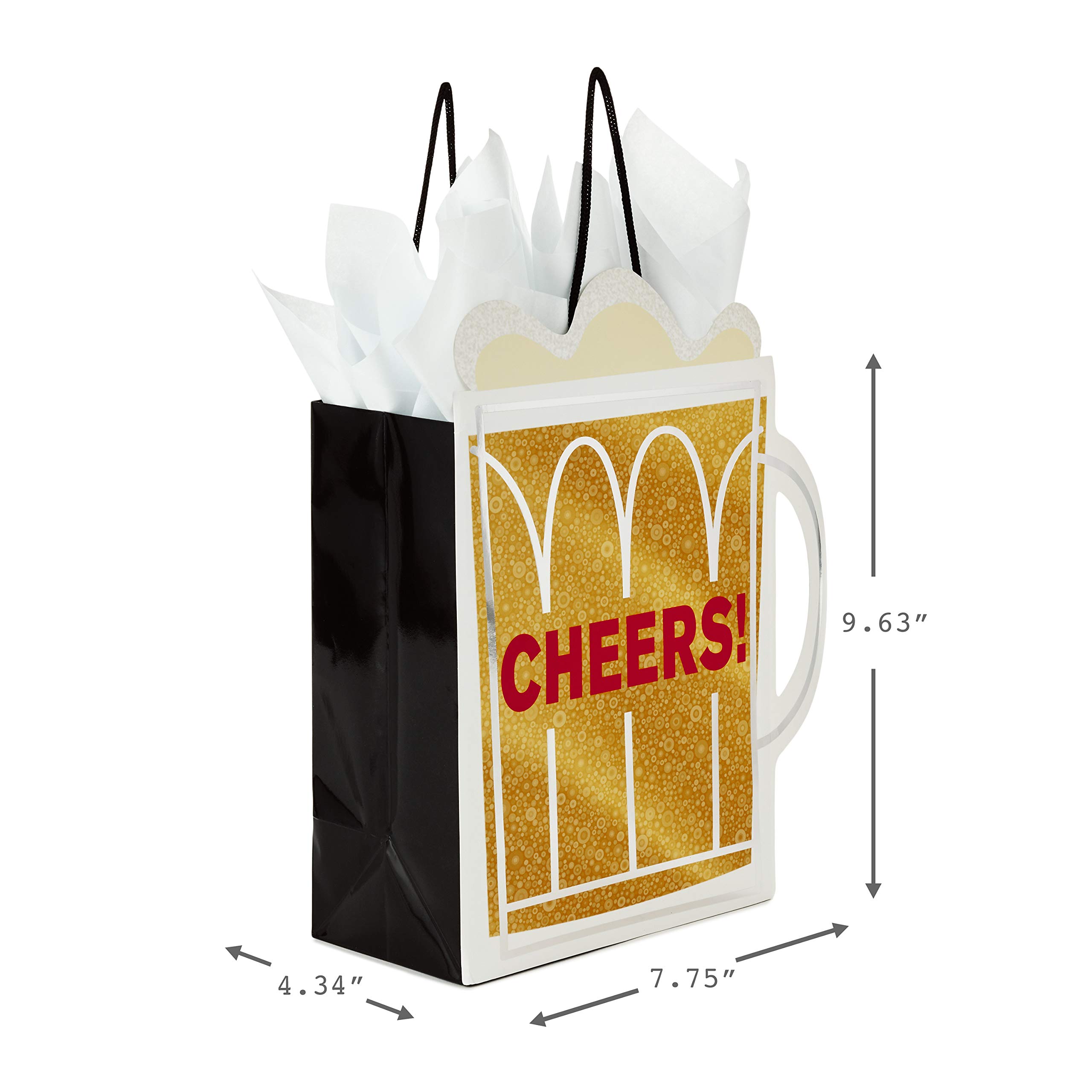 Make a beer lover's day with this gift bag made especially for them, featuring a fun beer stein design complete with a handle, foam, "Cheers!" lettering, and metallic foil accents.