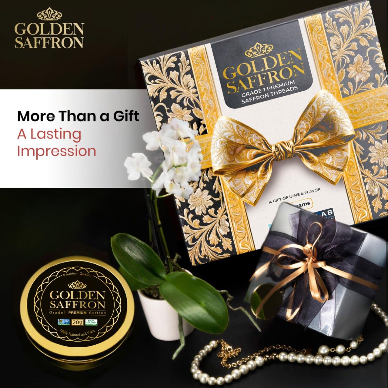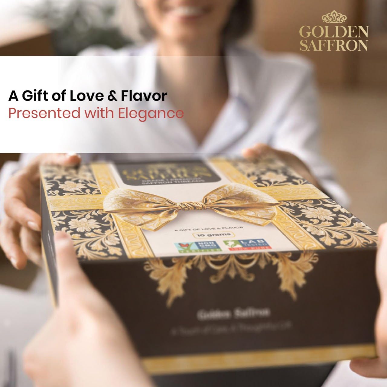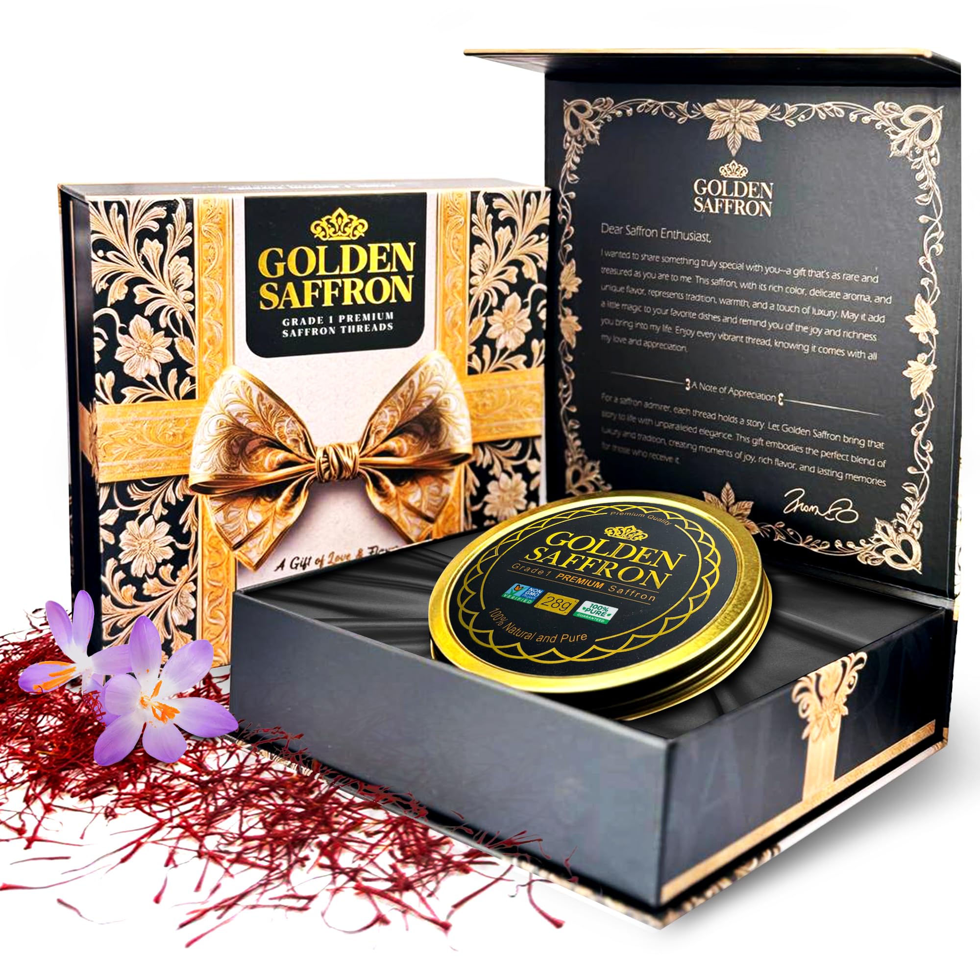 Experience the true essence of luxury with Golden Saffron. Our premium gift box contains the finest All Red Saffron Threads, carefully hand-harvested to preserve their natural aroma, flavor, and vibrant color. Each thread is Grade A+ Super Negin — the highest quality saffron available, perfect for gourmet cooking and culinary masterpieces. Our saffron is Non-GMO Verified, ensuring that you are receiving only the purest and most authentic product. Whether you're enhancing your tea, preparing paella, creating rich rice dishes, or adding an exotic twist to desserts and golden milk, Golden Saffron delivers exceptional flavor that will transform your meals. Packaged in an elegant gift box, this saffron is the perfect gift for food lovers, chefs, and anyone who appreciates fine culinary ingredients. Ideal for weddings, housewarming parties, or special occasions, it makes a thoughtful and luxurious present that will be cherished. Elevate your cooking to new heights and bring the golden touch of Golden Saffron to your table.