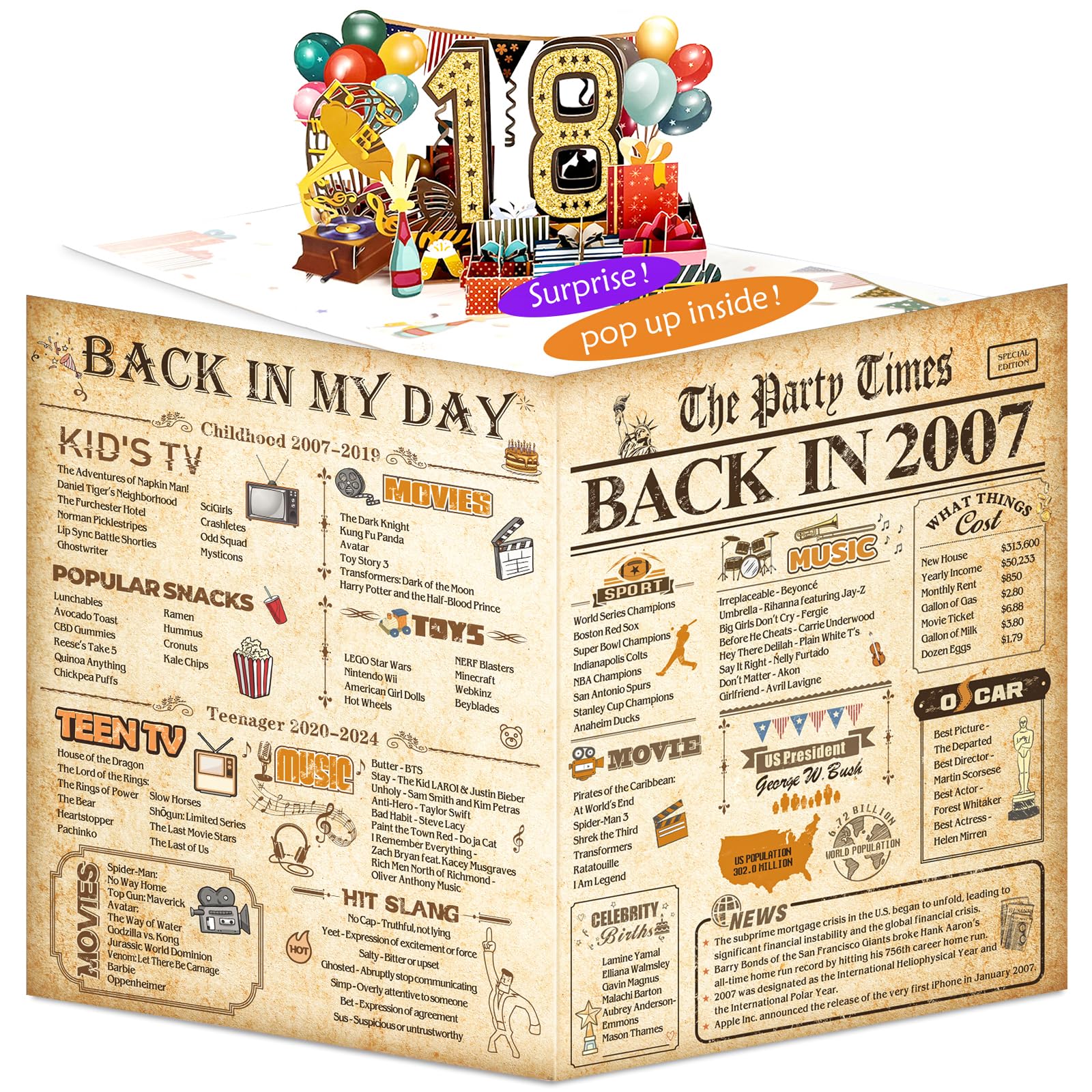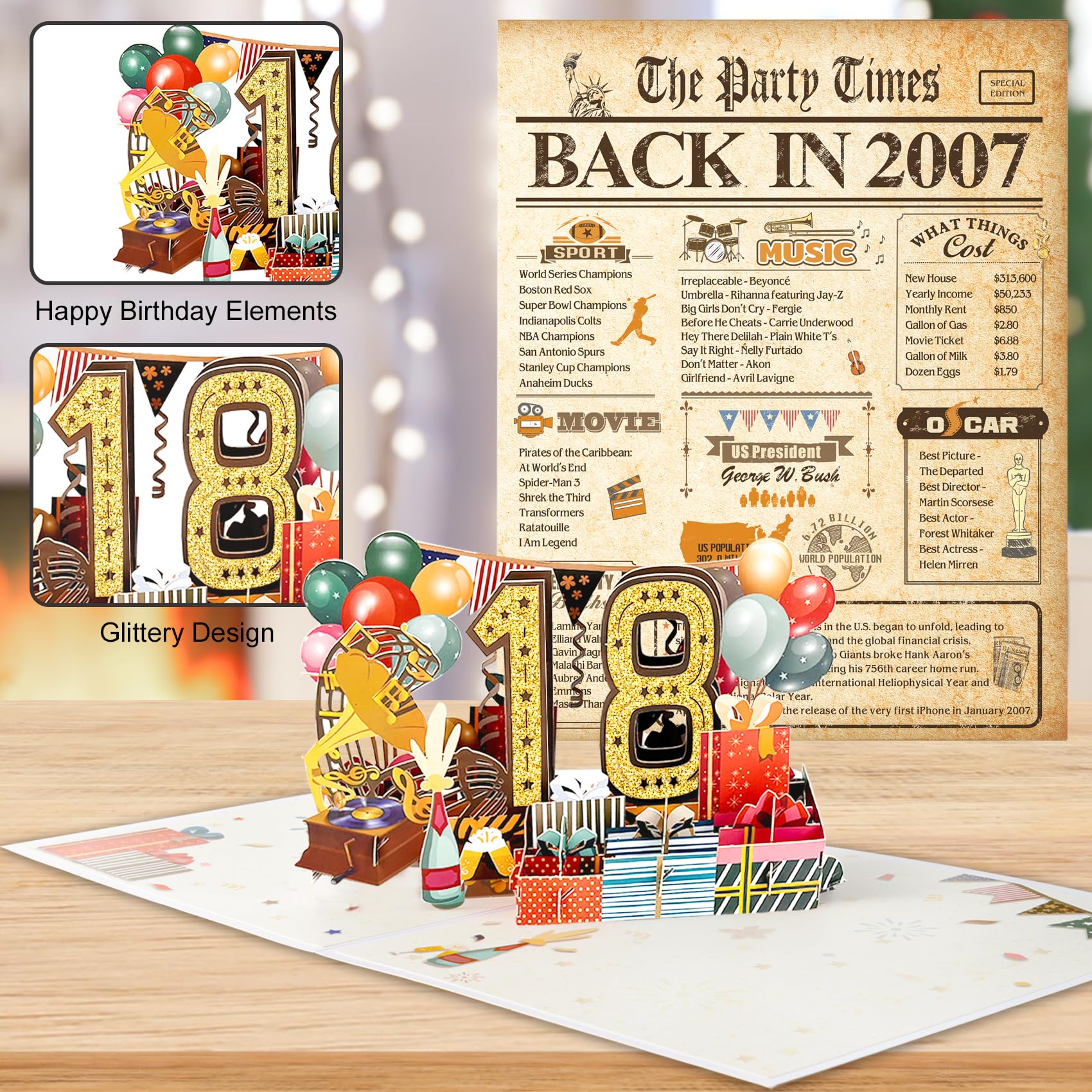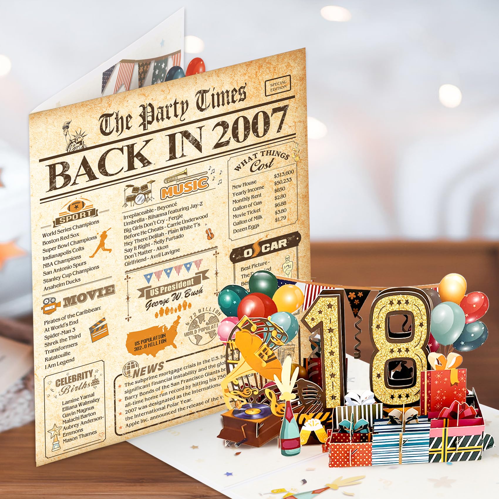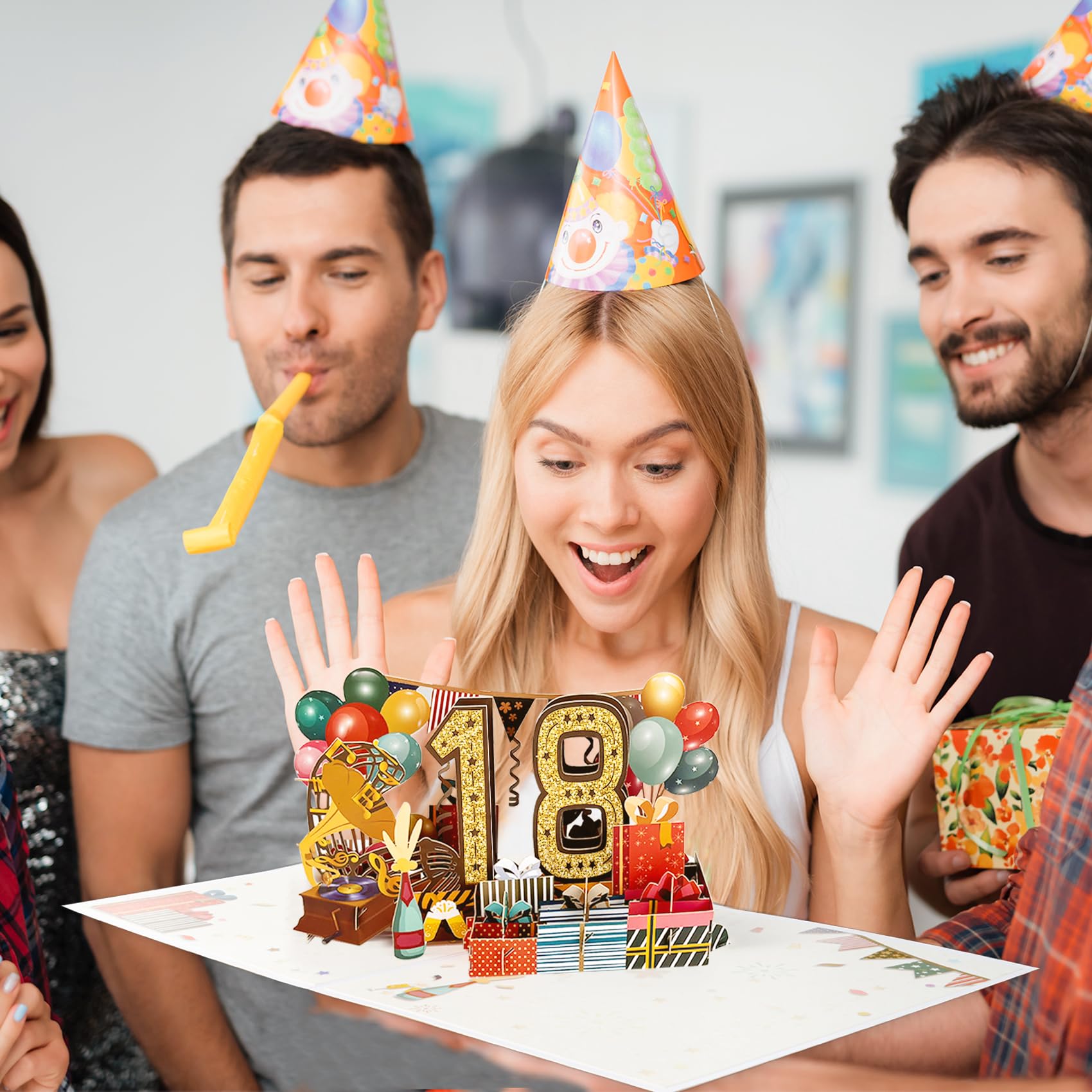 18th Birthday Pop Up Card: This cute 18th birthday pop up card is mini-masterpiece displays a beautiful 3D pop-up design.It can be popped up of features “18” with balloons and gift box. Ideal Creative Gifts for party. Makes your birthday or anniversary party’s decorations stand out