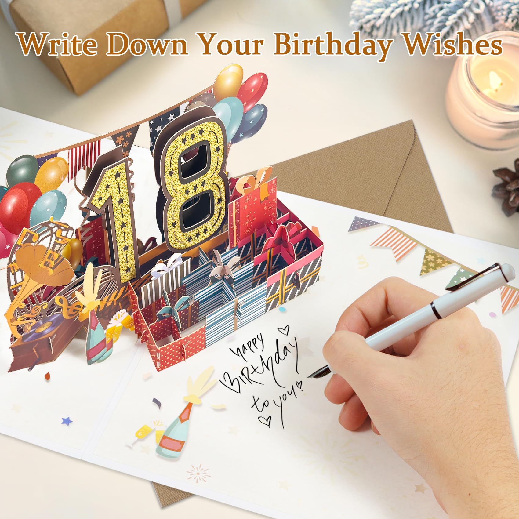 Unique feature of Gilding Cover: We use Hot Stamping on Poster Cover. When light shines on our cards’ text, it displays unusual visual effects from different angles, making them look like sparkling Gold jewelry.. Our birthday gift 3D pop-up card is wrapped in a high-quality, luxurious pearlescent paper envelope