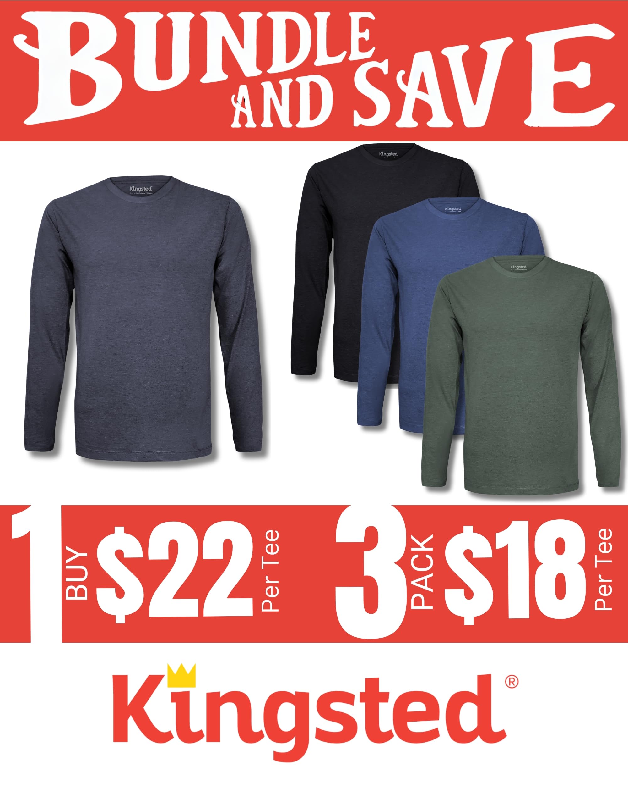 VALUE PACK - Bundle & Save with our long sleeve t shirts for men pack. Shop Now and experience our Royally Comfortable long sleeve tees for men!