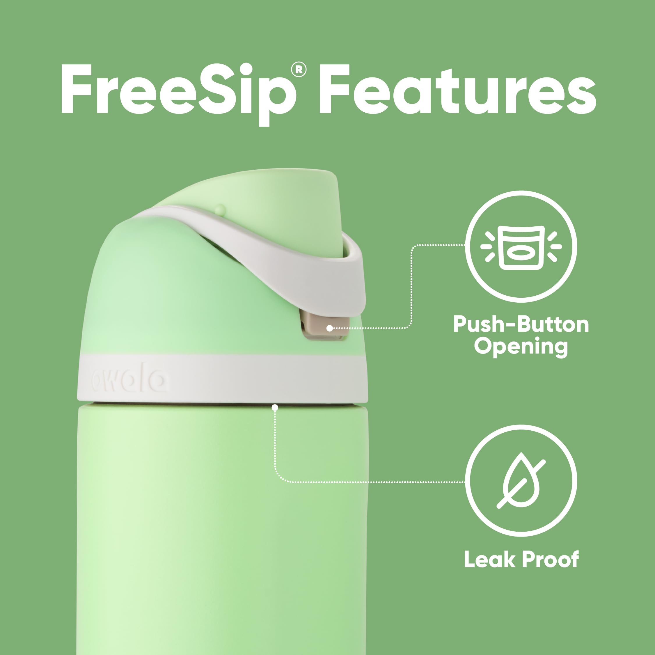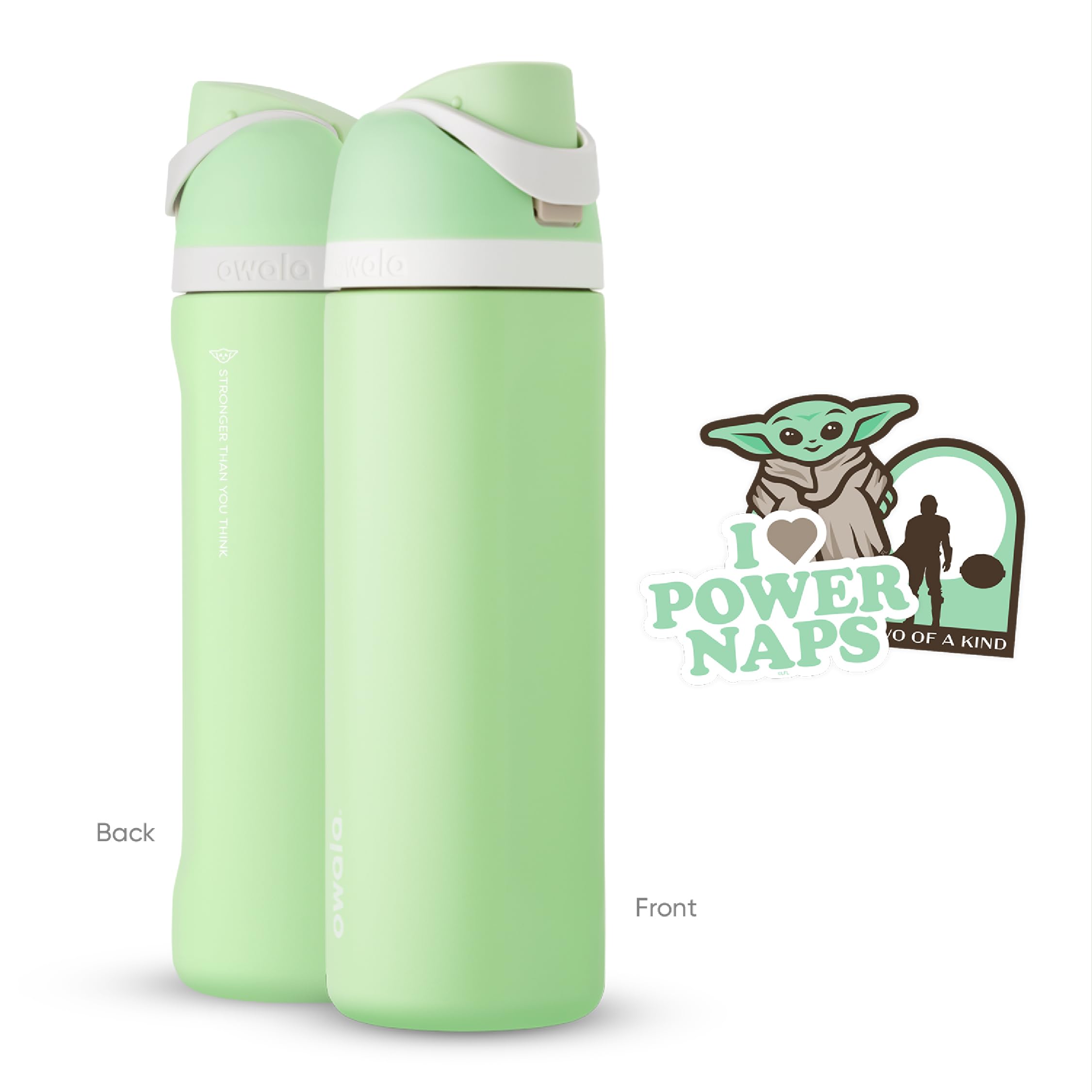 The Owala FreeSip Insulated Stainless-Steel Water Bottle with Locking Push-Button Lid easily tackles every thirst. With a built-in, easy-clean straw and a wide-mouth opening, the FreeSip reusable bottle is designed for drinking two different ways: sipping upright through the straw or tilting back to swig from the wide-mouth spout opening. Add in a push-to-open lid and Star Wars themes, and staying hydrated has never been simpler—or more fun. Additional features include double-wall insulated stainless steel that keeps drinks cold up to 24 hours, a carry loop that doubles as a lock, a cup holder-friendly base, and a wide opening for easy cleaning and adding ice. The Owala FreeSip Insulated Stainless-Steel Water Bottle with Locking Push-Button Lid is available in five colors. Lid is dishwasher safe; hand wash cup. Not for use with hot liquids. Manufacturer’s limited lifetime warranty.