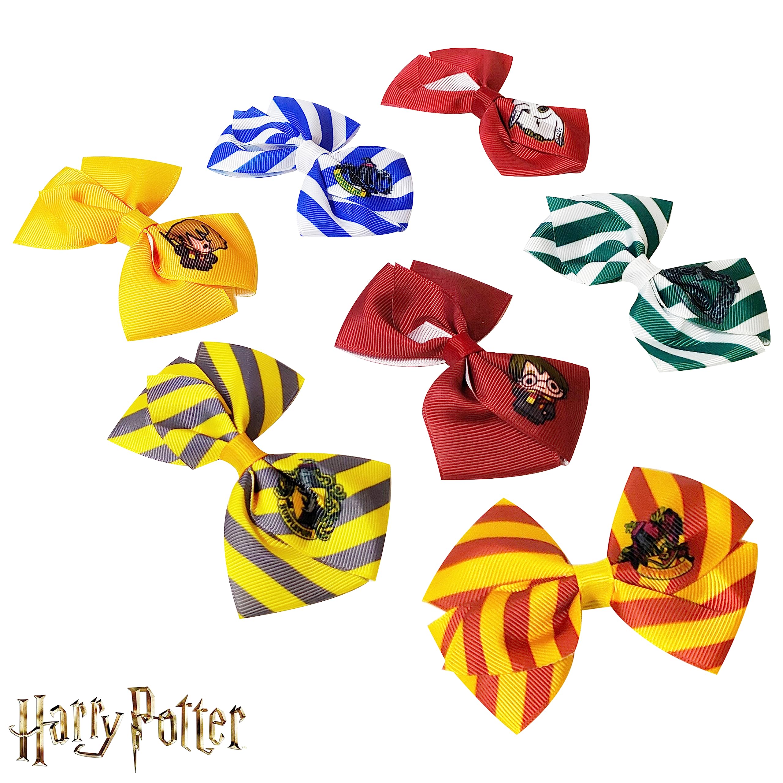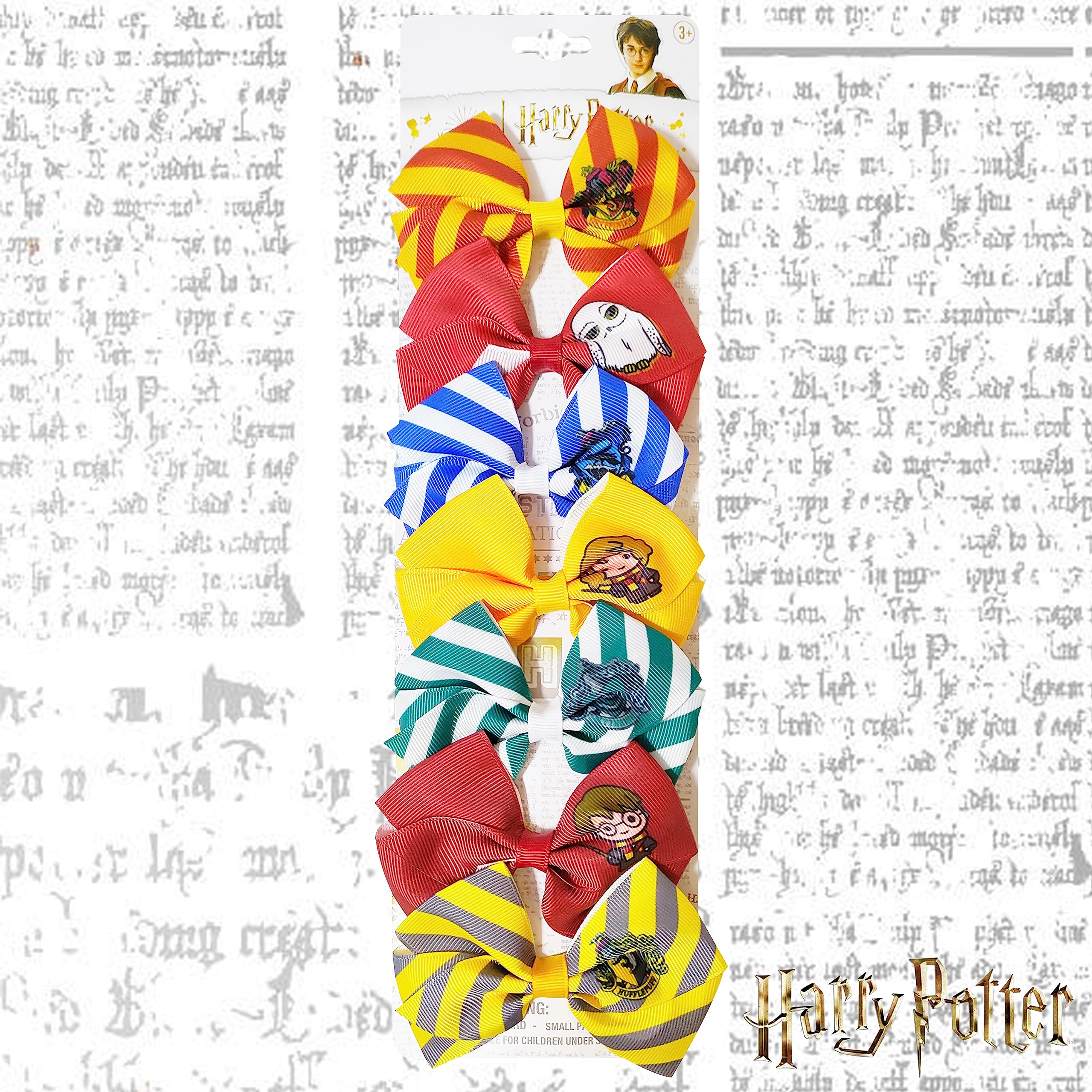 In the box: Luv Her Girls 7 Piece Harry Potter Hair Bow Set includes 7 multi-colored hair bows on a card; high-quality non-slip grip hair clips with smooth edges to minimize pulling and hair damage for a comfortable and pain-free hair styling.