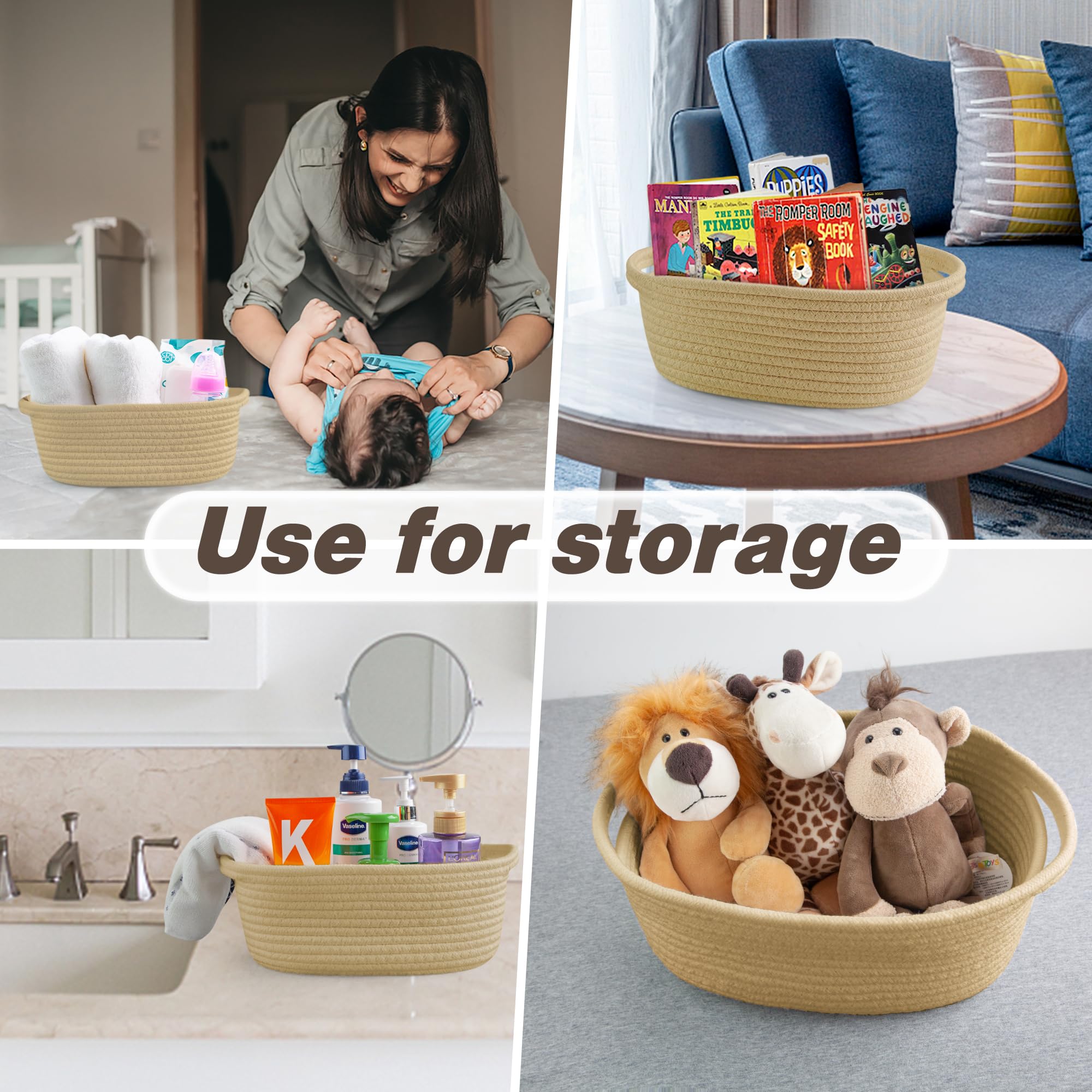 【Storage Basket】Our small rope baskets are great helpers for storing baby items, toys, books and pet toys. The opening design allows your cat or dog to easily access the toy. It can also store some office supplies to make your desk more tidy
