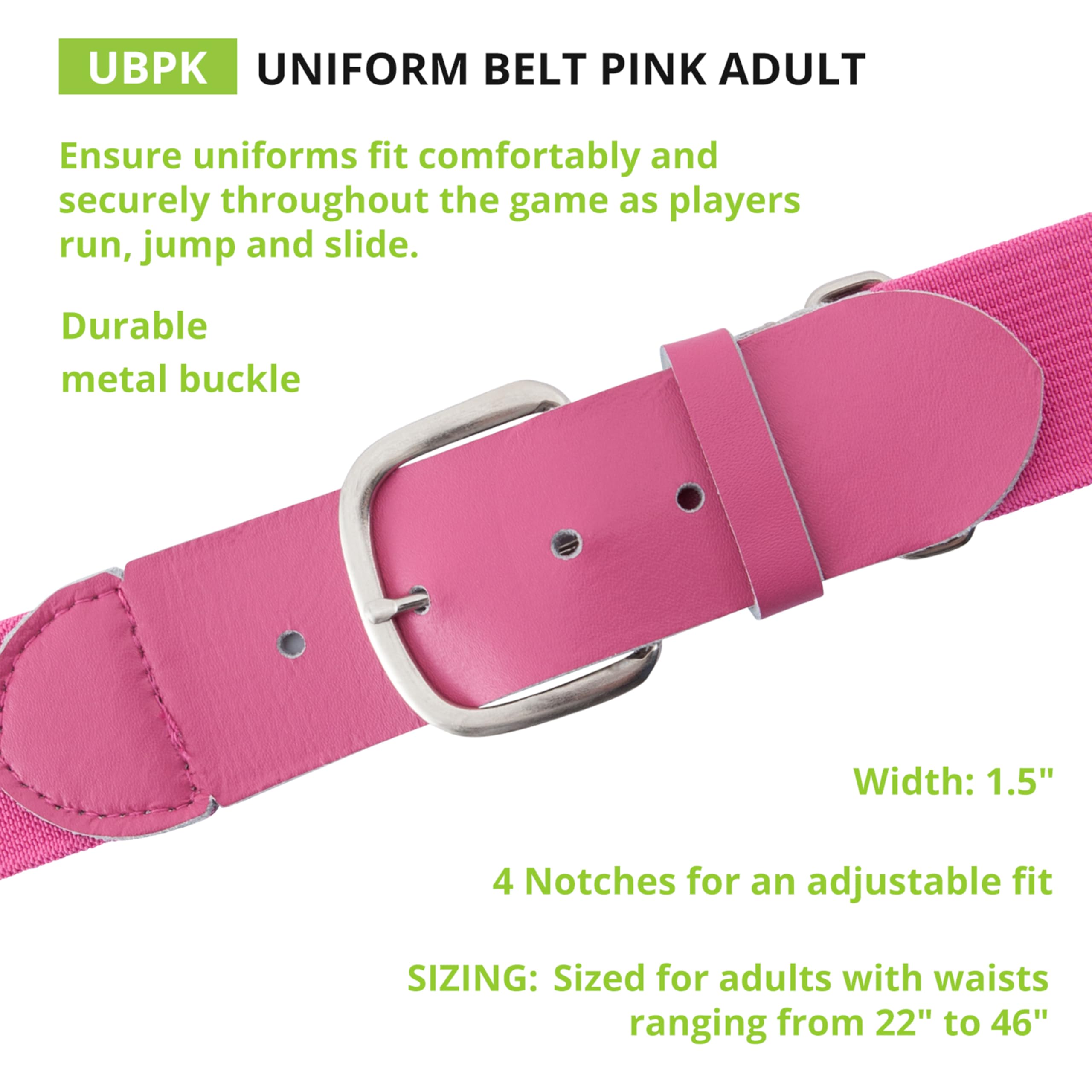 Ensure your uniform stays put with the Champion Sports Uniform Belt. Designed for versatility, this belt features an adjustable elastic band that stretches to fit youth and adult waists. A sturdy metal buckle and leather tab offer lasting durability, while the 1.5" width provides a clean, professional look. Choose from a wide range of colors to perfectly match your team's uniform.