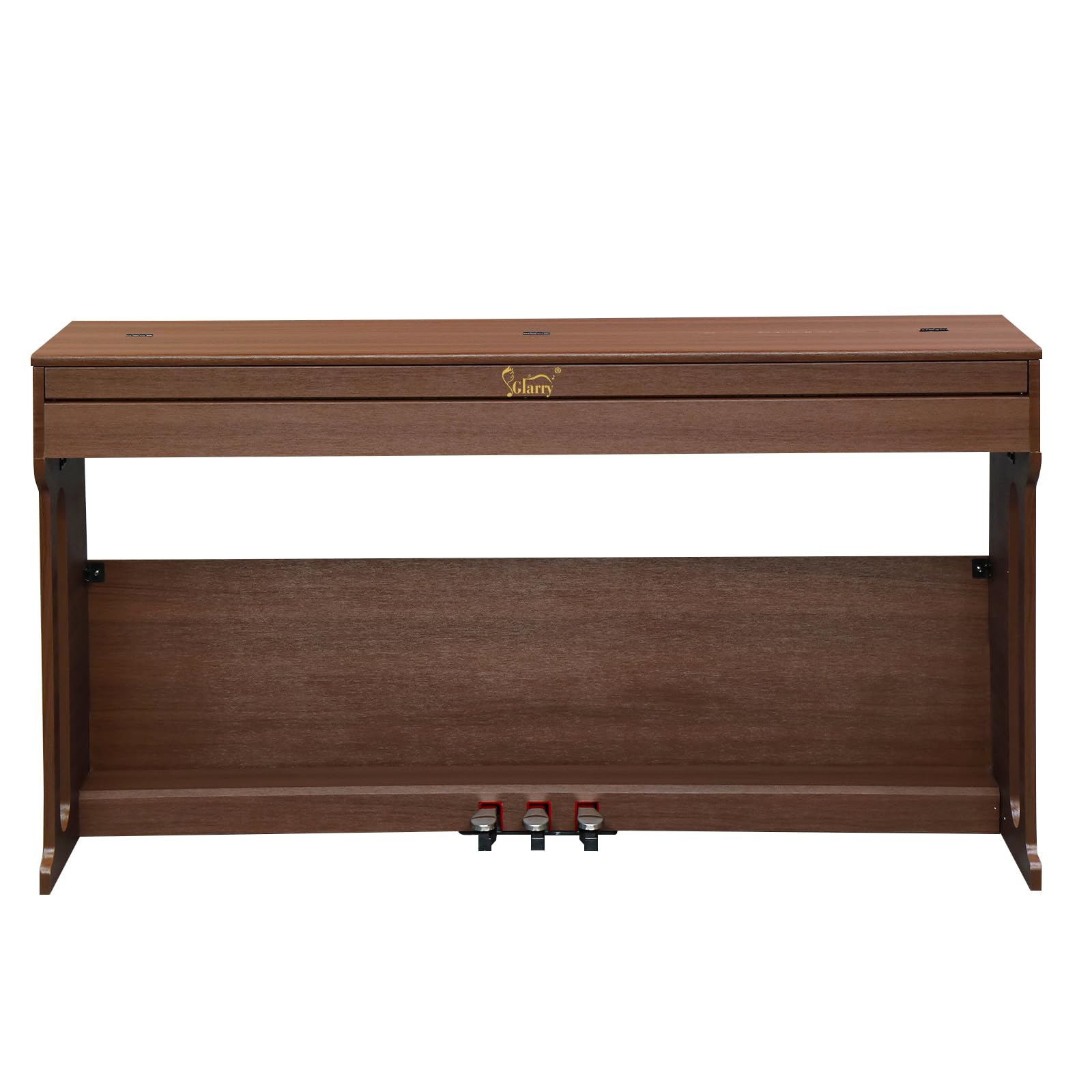 Introductions: GLARRY 88 Key Digital Piano Full Weighted Keyboards Design adopts European custom Dream Sound source, which can bring you the most striking sound effects. Our 88 key piano with two Dual Bluetooth,Audio Bluetooth and MIDI Bluetooth,Connect a COMPUTER or tablet with a USB cable for multimedia interaction. After the piano is turned on, bluetooth will be automatically turned on. The mobile phone can search the MIDI Bluetooth signal of this piano. After the connection, the playing software on the mobile phone can realize the wireless connection with the piano. it can also be used as a gift for relatives and friends, or as a prop for theatrical performances. Features: European custom Dream Sound source 128 Polyphony/ 80 Demo Songs/ 600 Rhythm/ 800 Timbre/7 Metronome/88 Tympanitic Note Built-in two 20 W Stereo Speakers 3 Pedal System:Soft pedal-Soften the tone;Sustain pedal-Continuously increasing lengths of sustained notes,from slight to full;Sostenuto pedal-Press the pedal halfway down to get a partial damper effect Dual Bluetooth,Audio Bluetooth and MIDI Bluetooth,Connect a COMPUTER or tablet with a USB cable for multimedia interaction. After the piano is turned on, bluetooth will be automatically turned on. The mobile phone can search the MIDI Bluetooth signal of this piano. After the connection, the playing software on the mobile phone can realize the wireless connection with the piano. Supports Cubase,FI Studio,Logic,Live ect. arrangement software Specifications: Brand:Glarry Piano Color: Black Walnut Piano Dimensions:53.93 in x 13.38 in x 29.5in (with Furniture Stand) Piano Dimensions:53.93 in x 13.38 in x 5.39in (without Furniture Stand) Piano Furniture Stand:13.38in x 4.88in, Thickness:0.59in Keyboard key Dimensions: Black key width 0.41in, press depth 0.37in; White key width is 0.866in and the press depth is 0.43in Package Dimensions:57 in x 17.71 in x 12.99 in Package Weight: 78.21 lbs/ 35.55kg Model:GDP-107 Keyboard Number of keys: 88 Key (A1-C9) Action: Full Standard Weighted Action Key Type: Piano-style Metronome:Yes Touch/transpose control: Yes Split/Touch Control: Yes Sounds Sound Source:European custom Dream Sound source Polyphony (max): 128-note Demo Songs:80 Rhythm:600 Timbre:800 Metronome:7 Tympanitic Note:88 Connectivity MIDI Connectivity: MIDI over USB Bluetooth:Audio Bluetooth and MIDI Bluetooth USB MIDI Connectivity: Yes Recording:Yes Headphone Jacks: 1 (1/8" Jack) 3 Pedal inputs: Soft/Sustain/Sostenuto Pedal Storage type: RAM 64KB,FLASH 128M Expandability Available: No AUX Input: Yes Line Output: Yes Line Input: Yes Onboard Features Recording/Playback MIDI Sequencer Accompaniment Styles: Comprehensive Chord Accompaniment Preset Songs: 80 Display: Backlight LED Built-in speakers: Yes (2* 20W) Package Includes: 1 x Digital Piano 1 x Power Adapter 1 x Triple Pedals 1 x Headphone 1 x Headphone Adapters 1 x USB Cable 1 x Android Cable 1 x Piano Cloth 1 x Piano Cover 1 x Keyboard Sticker 1 x Music Clip 1 x Screwdriver , Screw Accessories And Manual