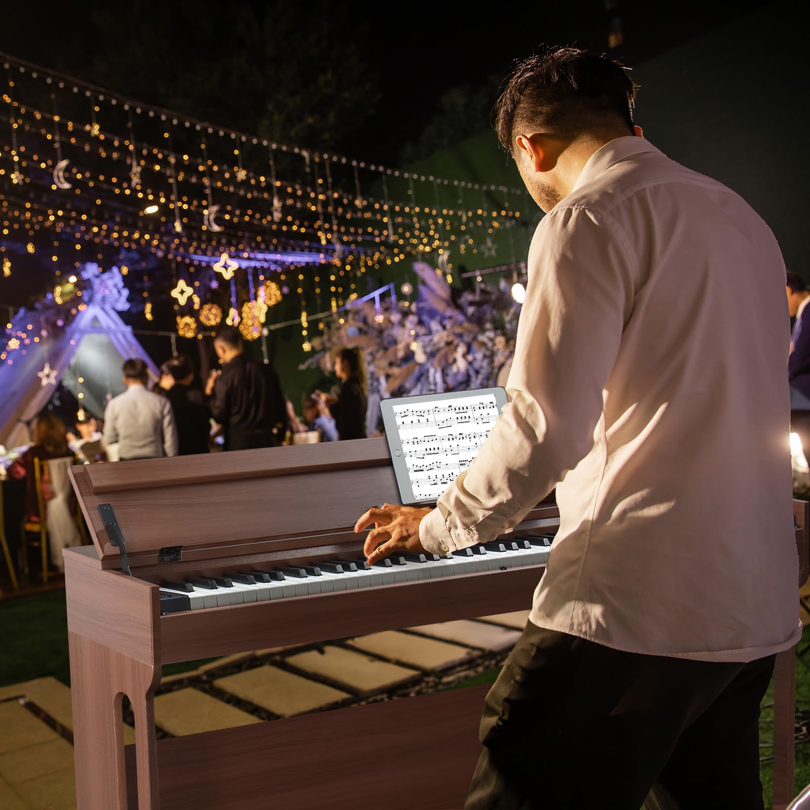 【88-key Full Weighted Keyboard】The keyboard piano is an 88-key Full-Size Weighted Keys. The design of the appearance and the level of configuration imitate a real piano, which gives you a real experience and feeling. The realistic tactile sensation of the keyboard with similar resistance and rebound, beautiful sound feedback, which can bring you a realistic feeling.