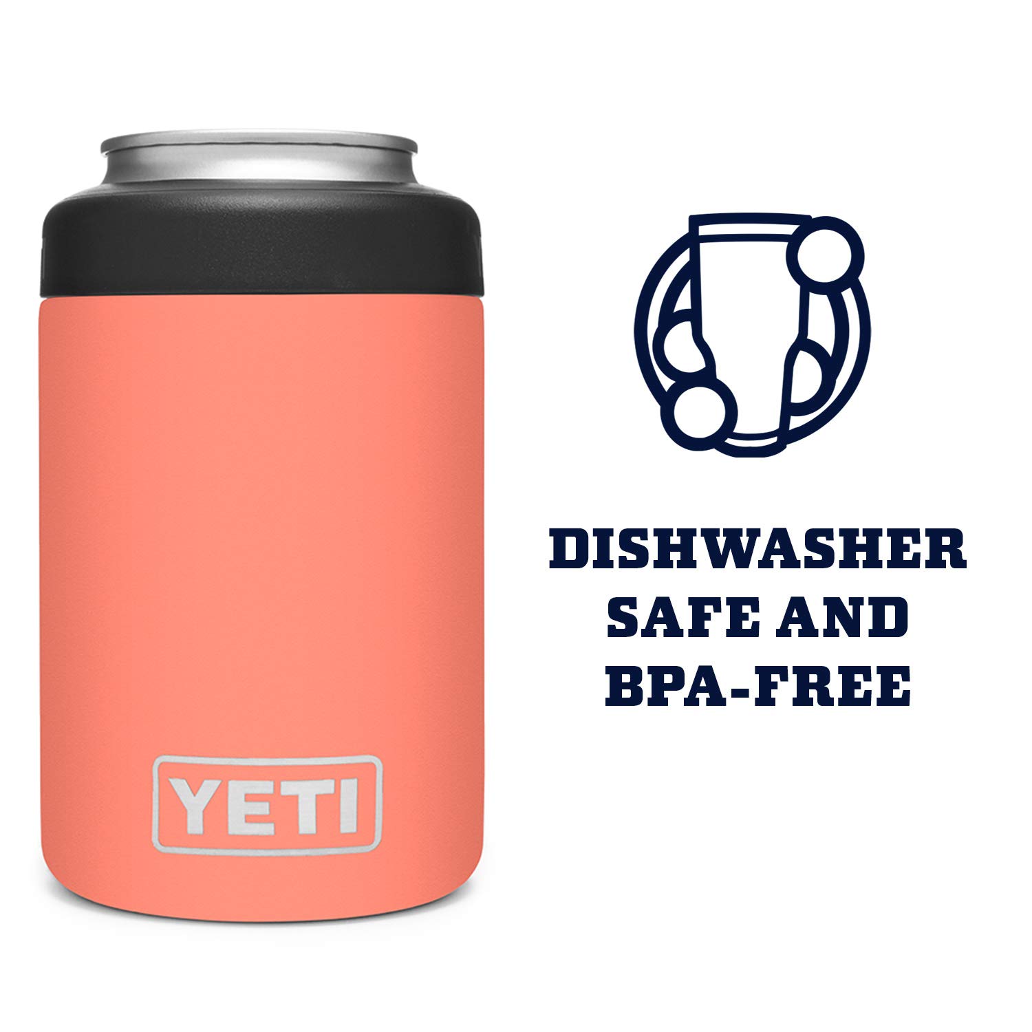 The YETI Standard Colster 2.0 is dishwasher safe and measures: 3 in x 4.25 in
