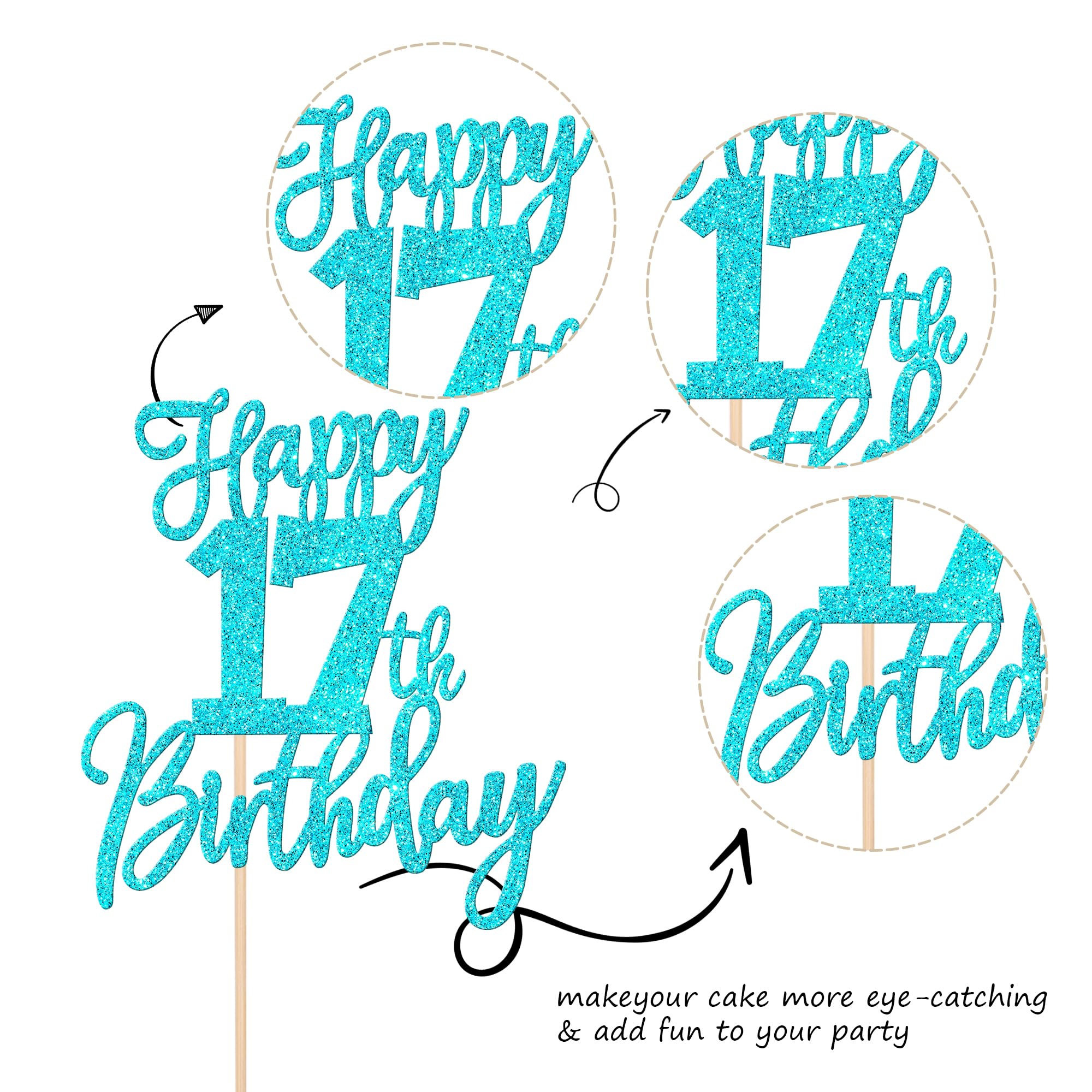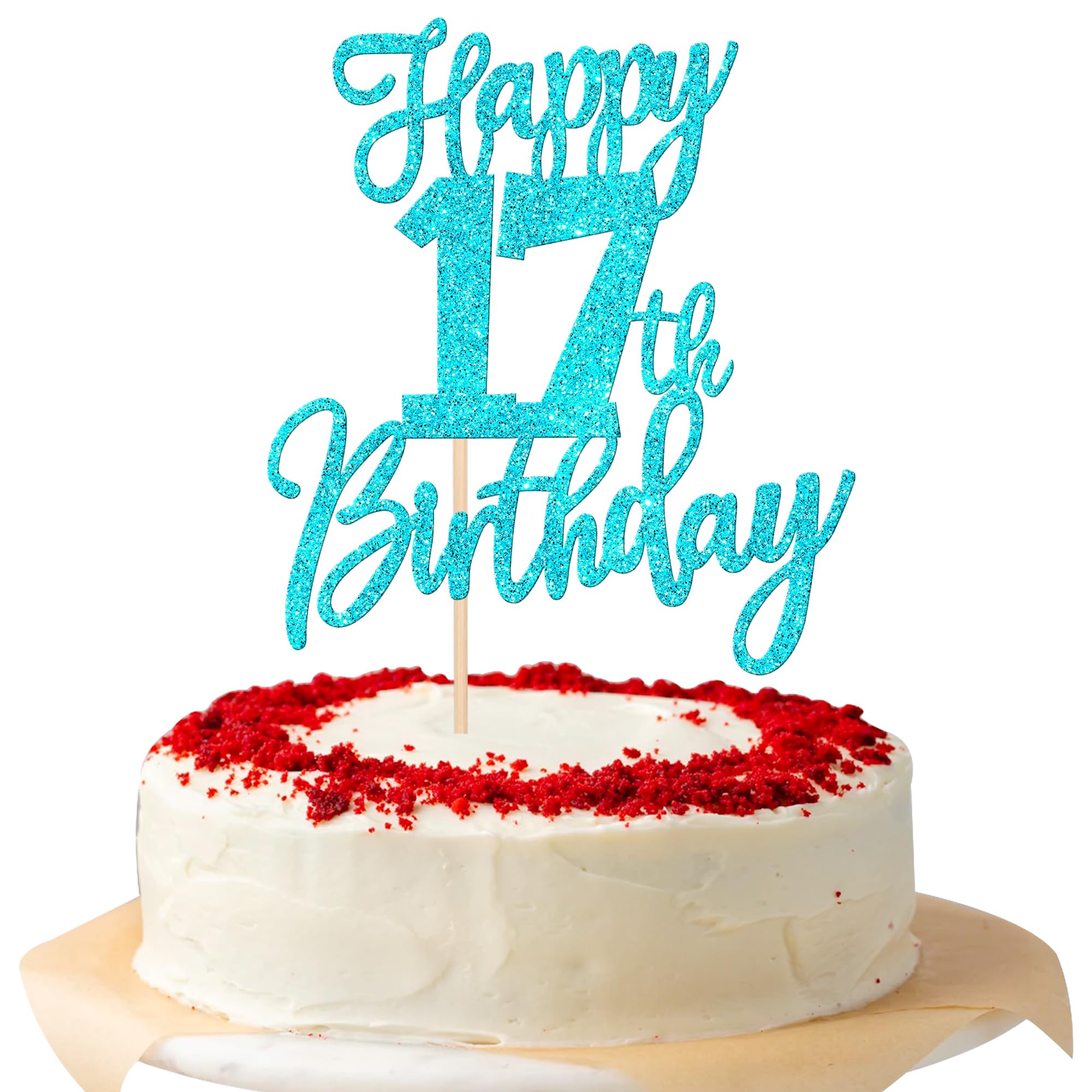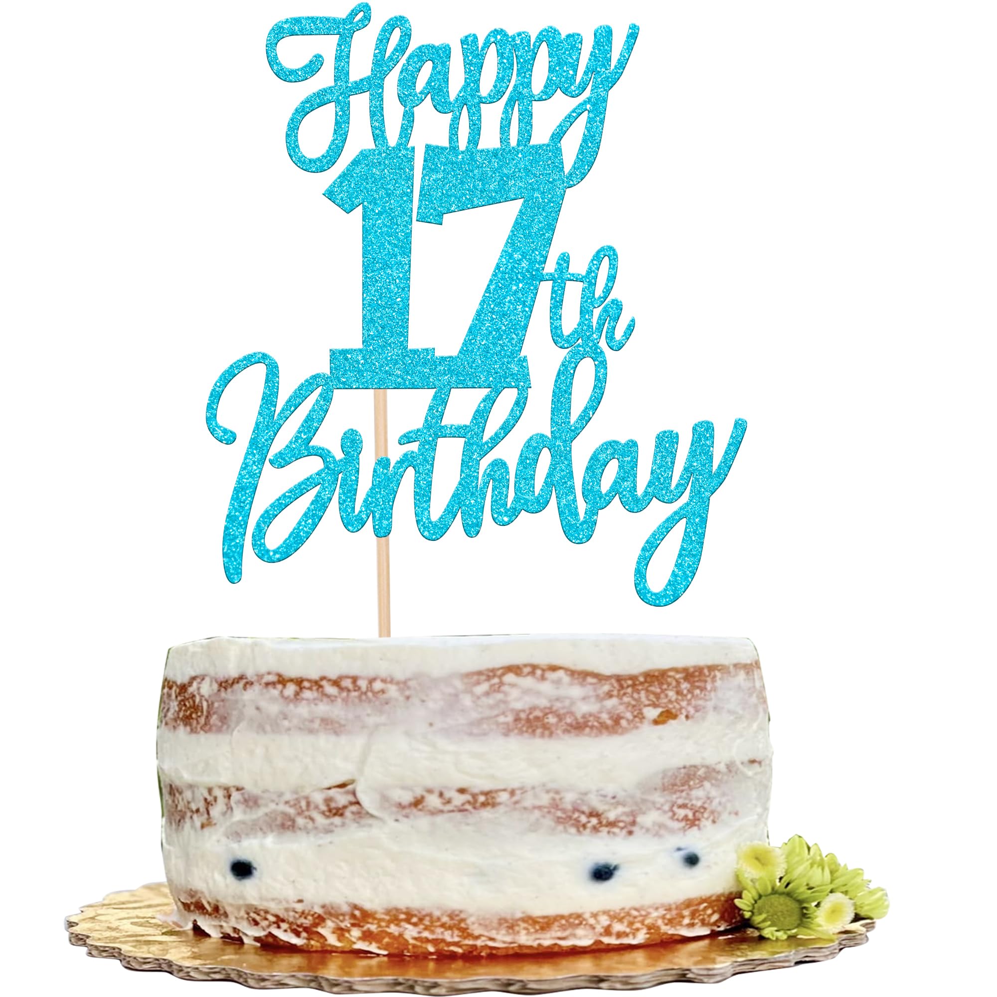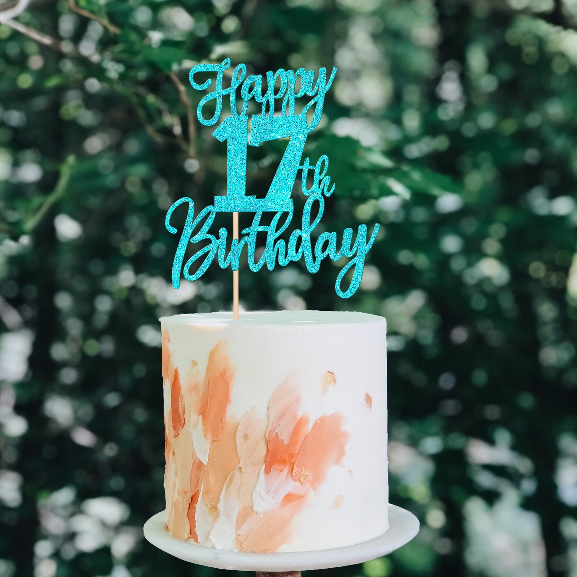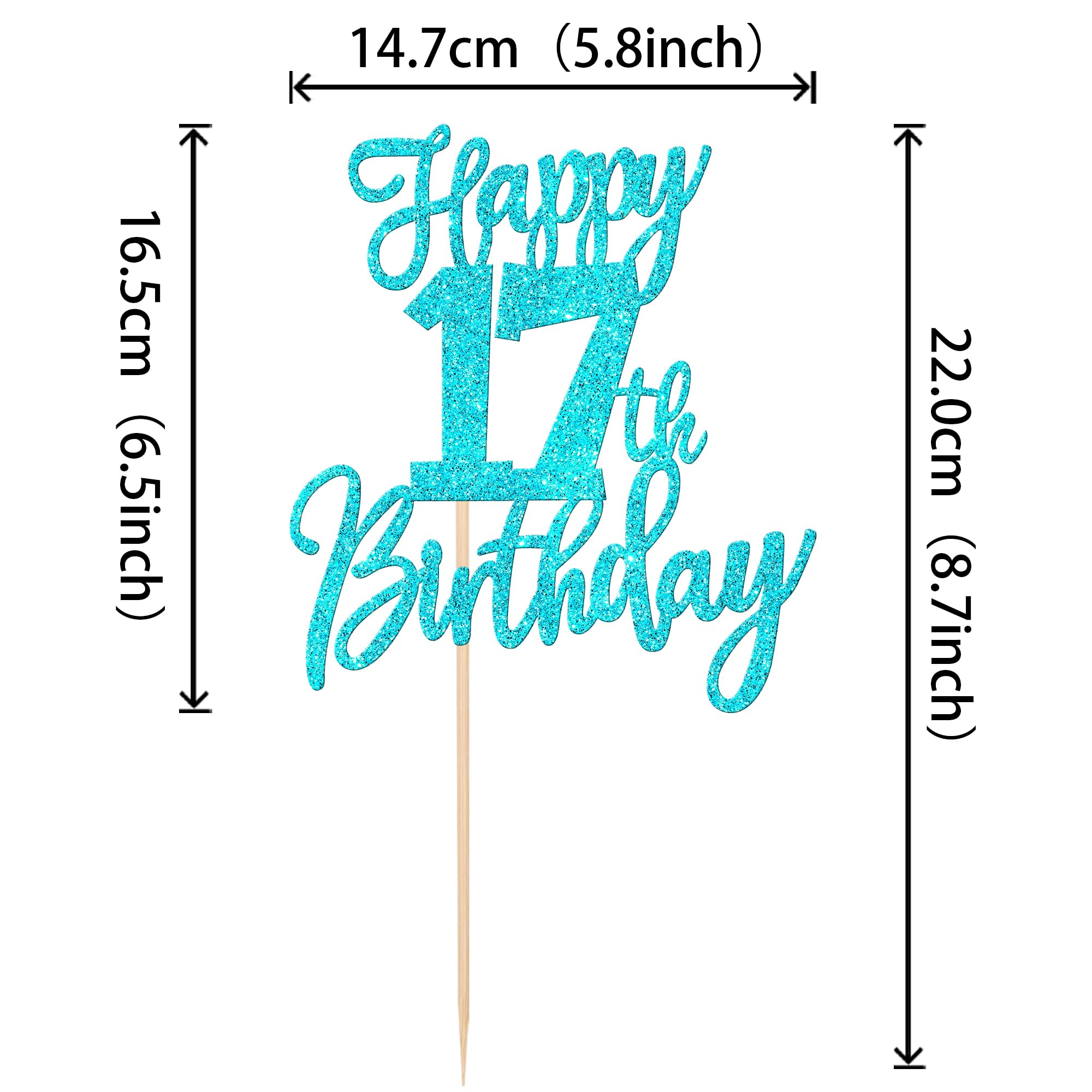 Happy 17th Birthday Cake Topper for Happy 17th Birthday Theme Party Cake Decorations Supplies Perfect for happy 17th birthday theme party,cheers to 17 years theme party, 17th anniversary theme party cake decorations supplies. Pack of 1 pcs. The size is W 5.8 inch * H 8.7 inch / W 14.7 cm * H 22 cm ( with stick ) Made of high quality paper card stock and food grade sticks,thick and sturdy. This cake topper is one side glitter, another side is white, and this is intended for decoration only, please do not put them in oven or microwave. If the item you received has any defects, please contact us for refund.we will deal with it within 24 hours.