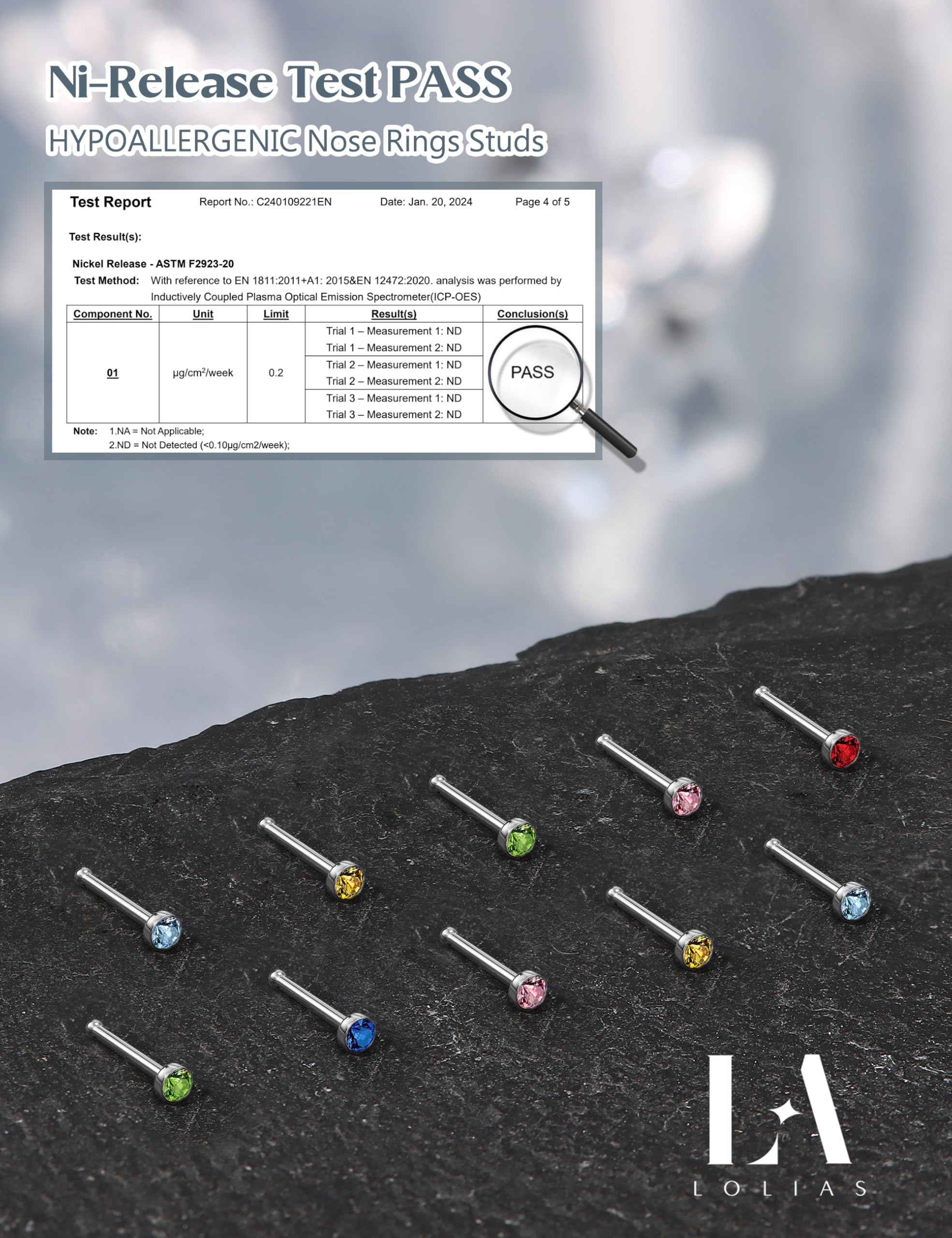 Hypoallergenic Material --Made of 316L surgical steel, the nose rings studs set has passed The Anti-allergy Test,Usage Time Test,Waterproof Test,etc. paired with dazzling AAA cubic zirconia, nickel and lead-free. Crafted with a highly polished surface and advanced electroplating technology, our nose pins are lightweight and comfortable to wear. You won't even feel them on your skin