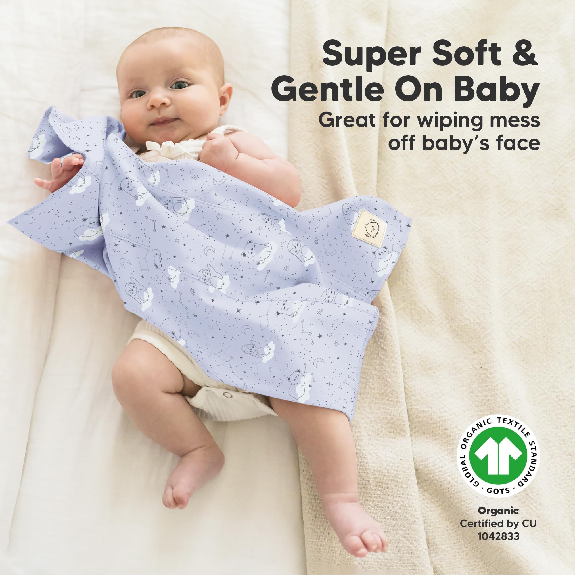 20" by 12" Perfectly Sized Burp Cloths - Enjoy a calming burping experience with the KeaBabies Shea Baby Burp Cloths. Made longer and larger, with double-layered ultra soft organic cotton (GOTS Certified CU 1042833) to ensure you stay mess-free.