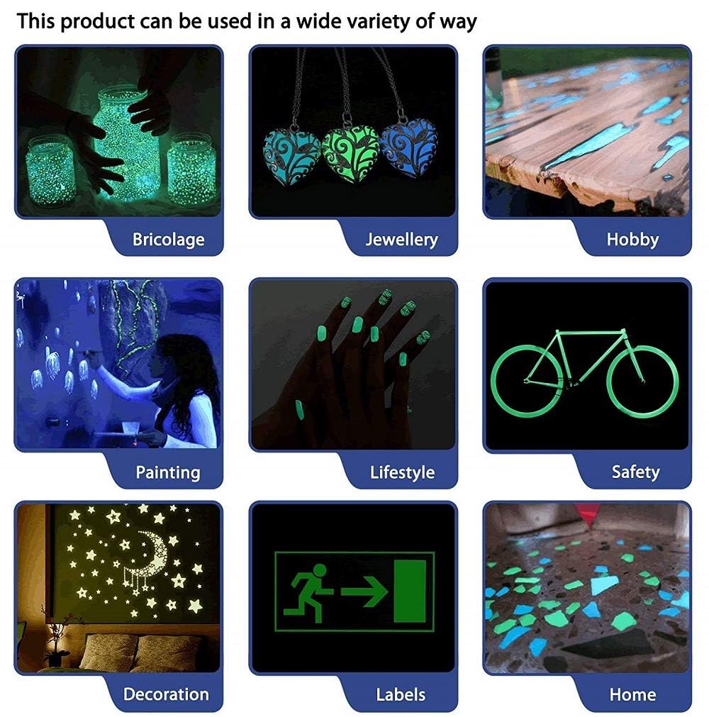 <p>β <strong>BEST RESULTS</strong> - Great Glow Powder = Great Glow Results - Brightest intensity and longest lasting Phosphorescent Glow Powder - This dark glow pigment is crafts with high-quality materials that create vibrant colours - not just oil based mediums like other glow in dark powders.</p>