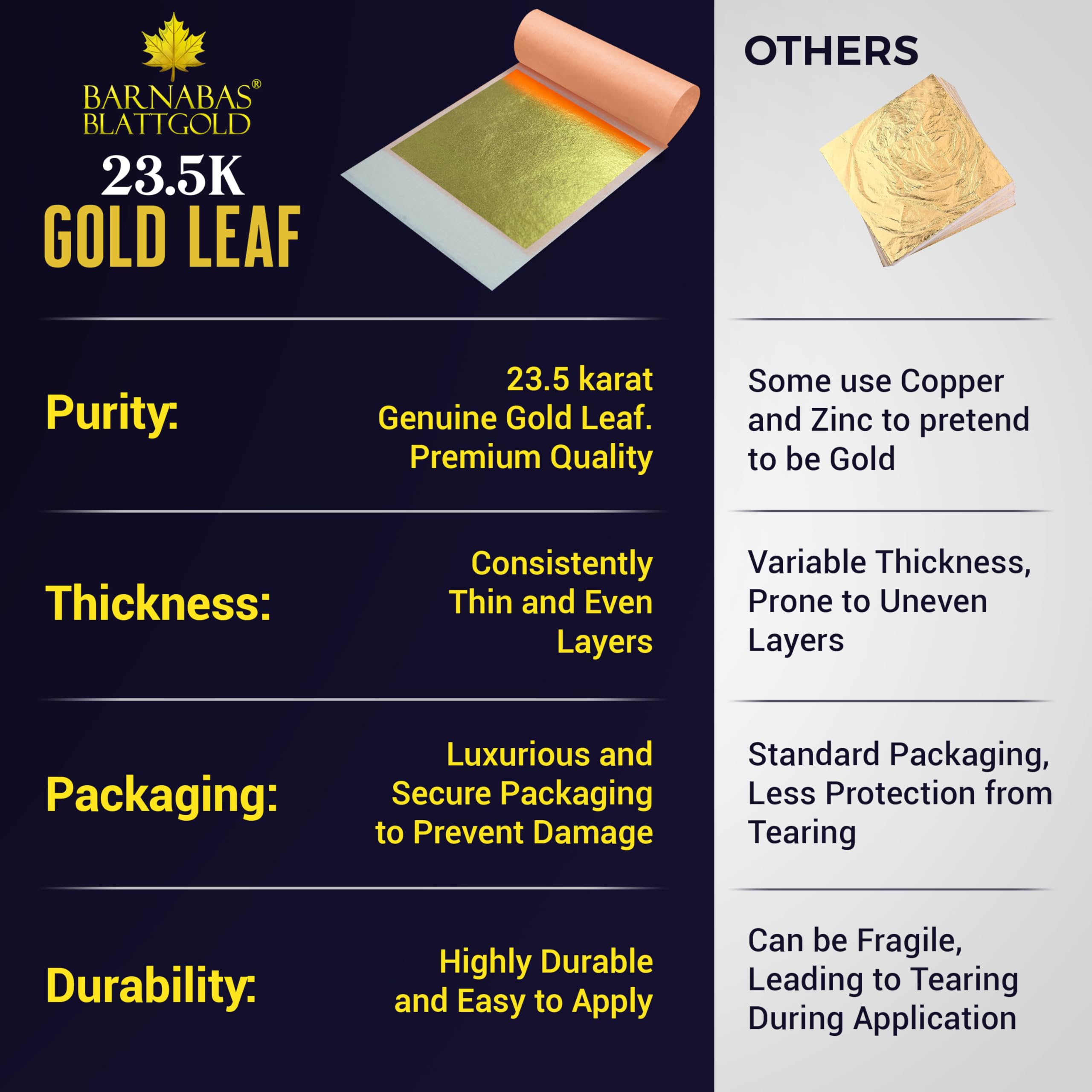 High Quality Gold Leaf: With 30 years of expertise in the creation of gold leaf foil, gold leaves, and gold leaf for art, at Barnabas Gold we pride ourselves on high quality, purity and consistency.