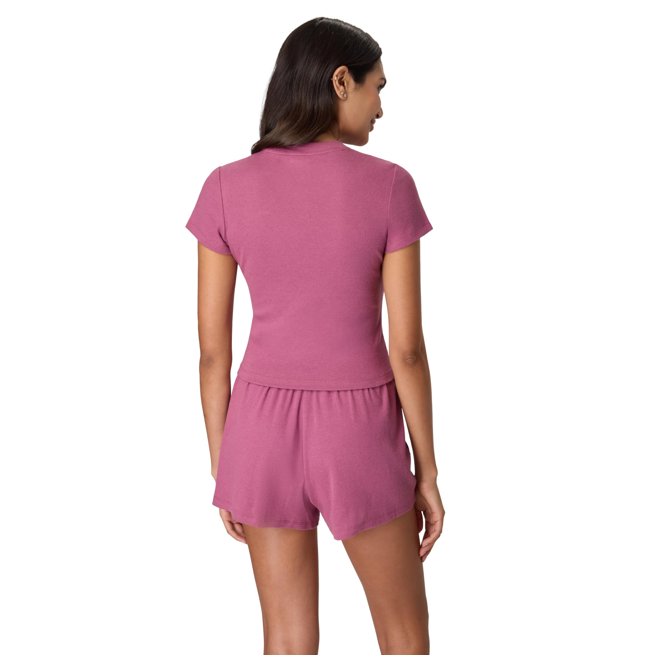 IT’S ALL IN THE DETAILS - This ribbed cropped baby doll tee and ribbed sleep short set blends comfort with versatility. Wear them together or mix and match for endless outfit options.