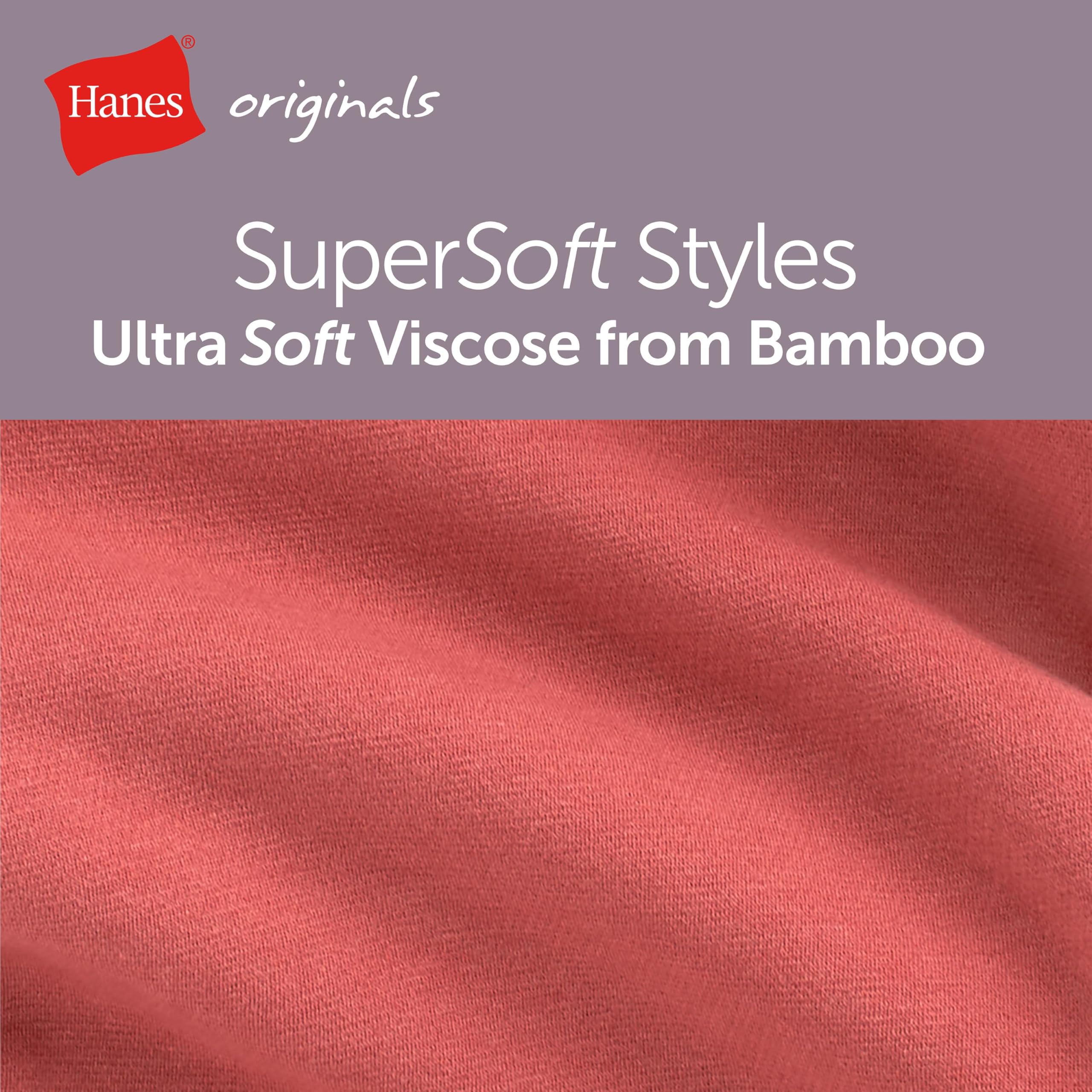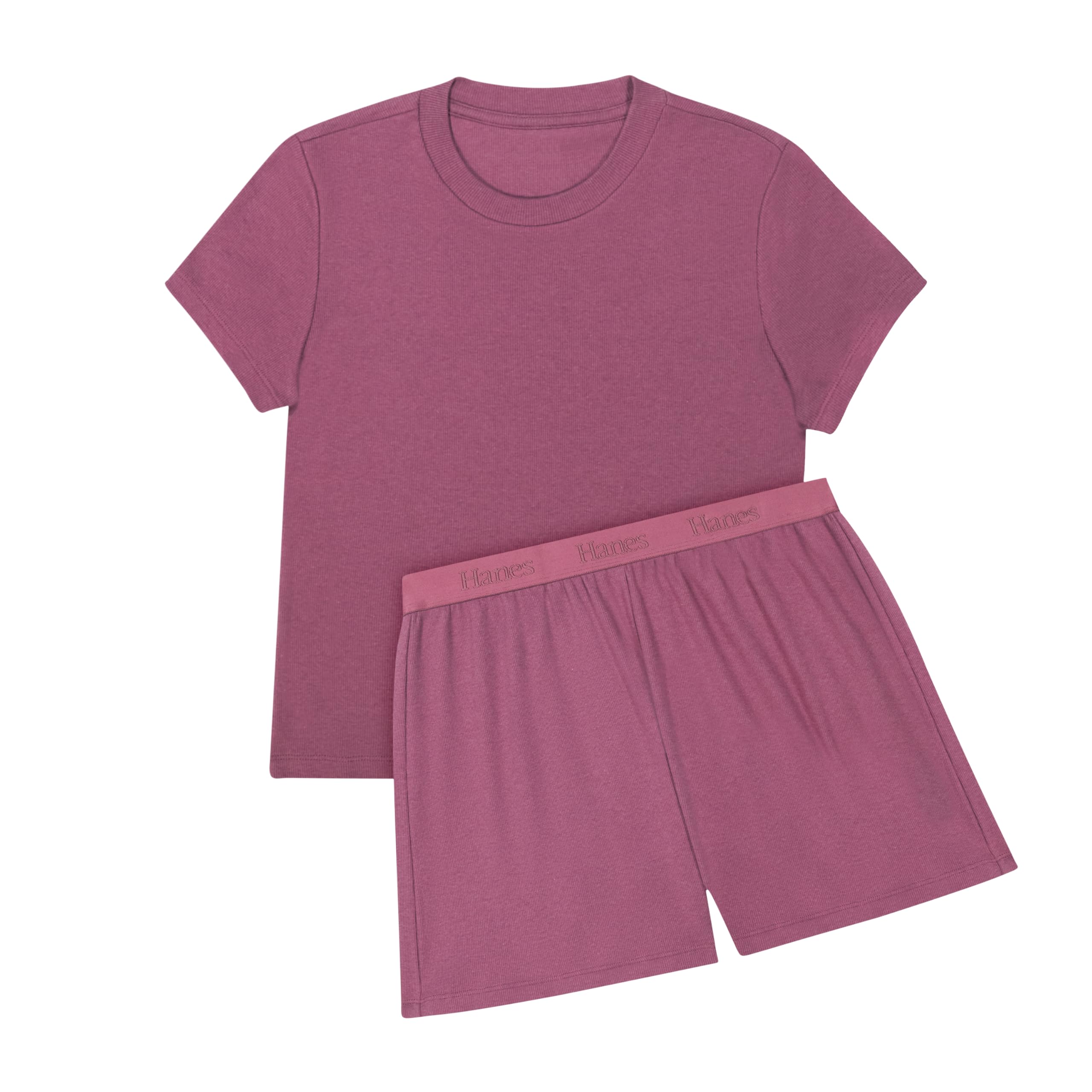 Description Some matches are just meant to be. Leave it to Hanes® Originals to pair together a ribbed loungewear set that's soft, breathable, and made for lounging. This women's SuperSoft Comfywear cropped baby doll tee and sleep shorts set is crafted from our softest fabric EVER, a luxe viscose from bamboo blended with cotton and spandex for a flexible fit. The tee boasts a youthful, cropped design that can be layered but also effortlessly complements the ribbed shorts - allowing you to create a look that you can call your own. Hanes Originals. Who says you can’t have style and comfort? (Not us.)
