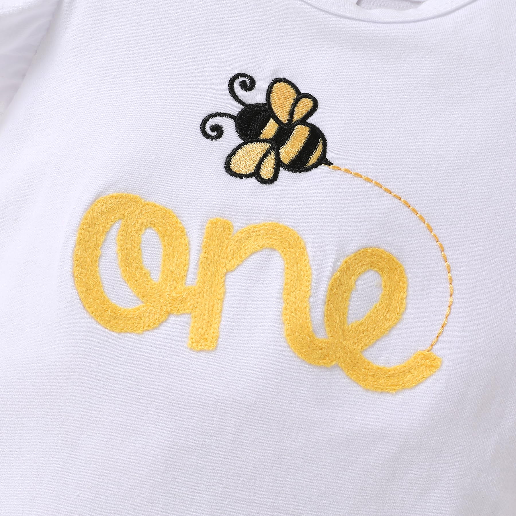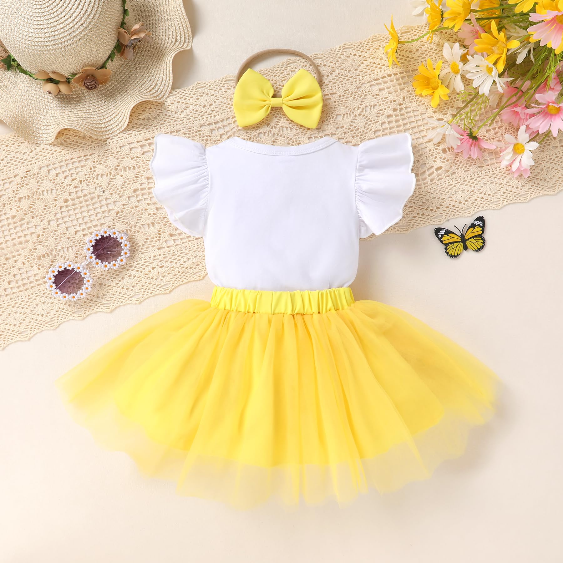 🐝Adorable Design: "ONE"bee/sunflower/cow letters printed in organic cotton romper with yellow tutu skirt, so adorable for your little one.