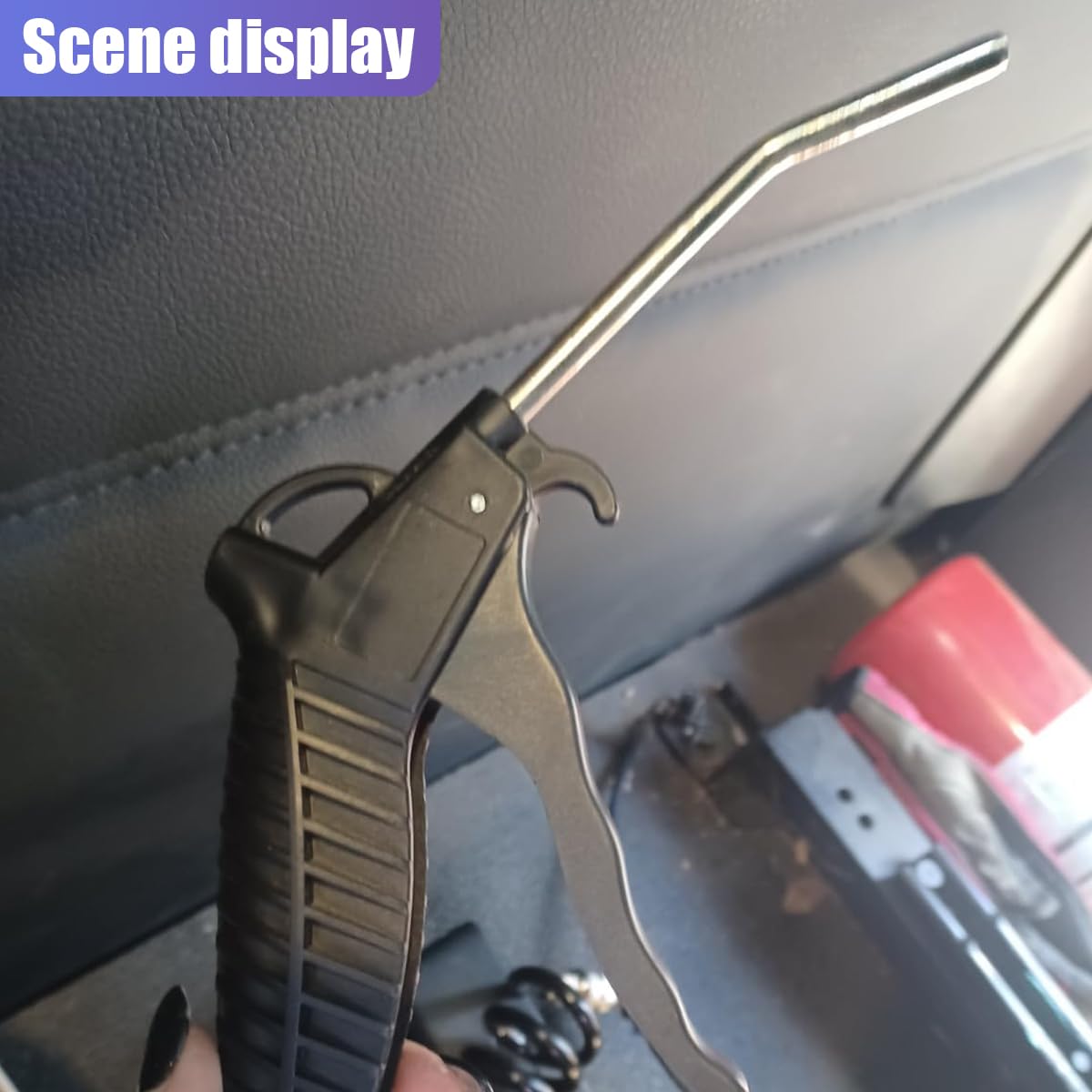 【Long Nozzle Design】: This air duster gun is equipped with a high-quality metal nozzle, which can accurately regulate the airflow and release strong pressure. Its long and thin nozzle strengthens the air pressure transmission, which can deeply remove the dust accumulated in the narrow hidden corners such as the bottom of the car seats and the inside of the machine, effectively solving the problem of cleaning dead corners.