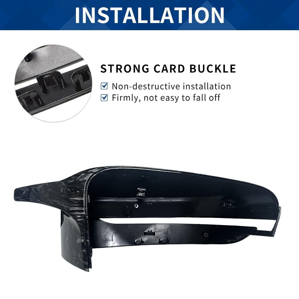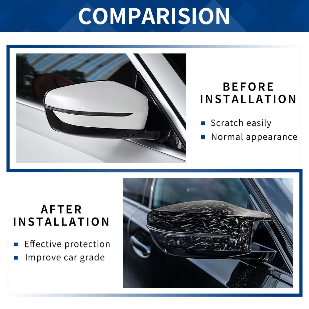 Package: A pair of mirror caps, only for LEFT-Hand Drive car. This option features a rearview mirror cover made of ABS plastic material that has a 3D printed forged carbon pattern