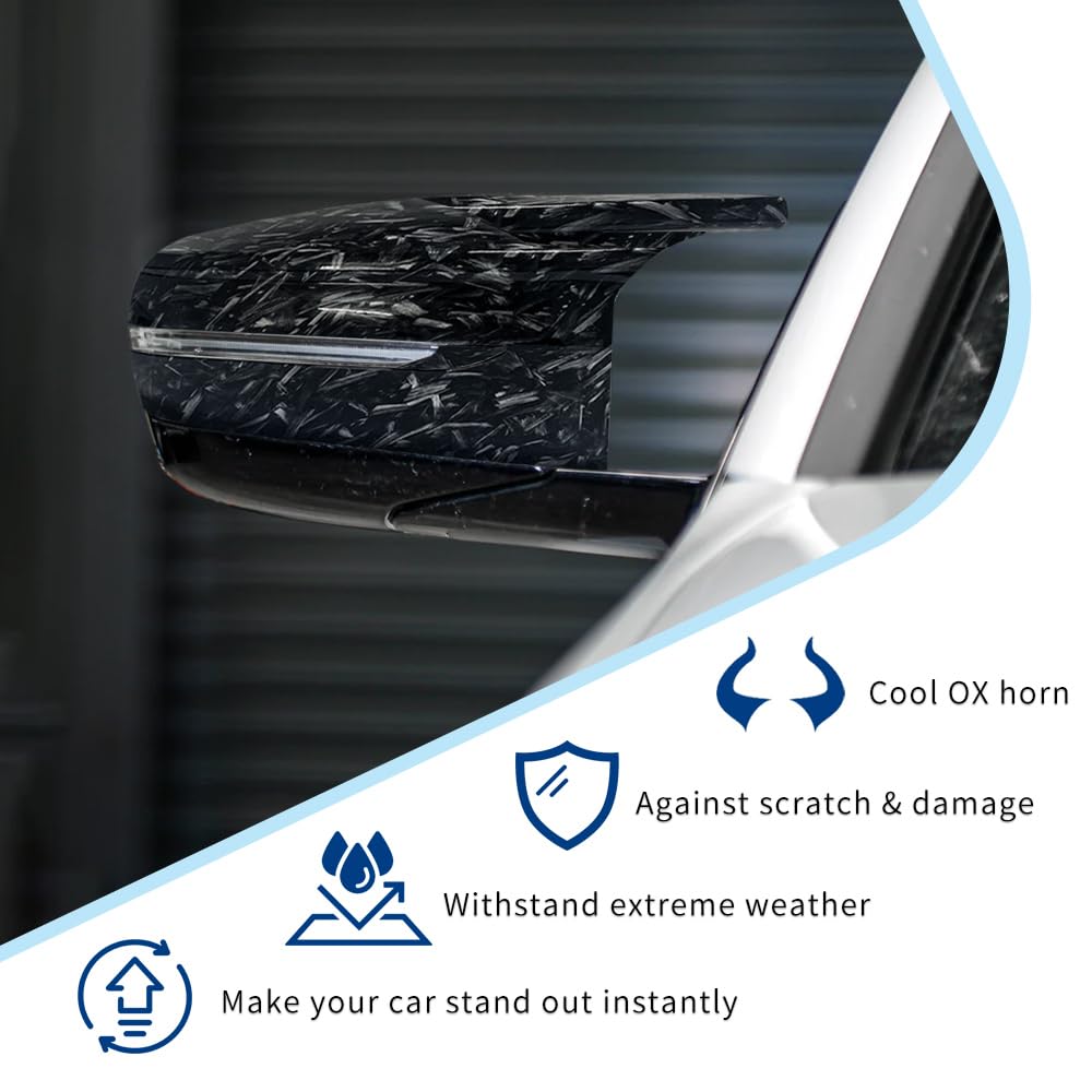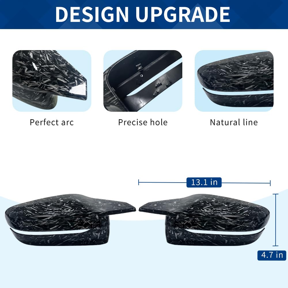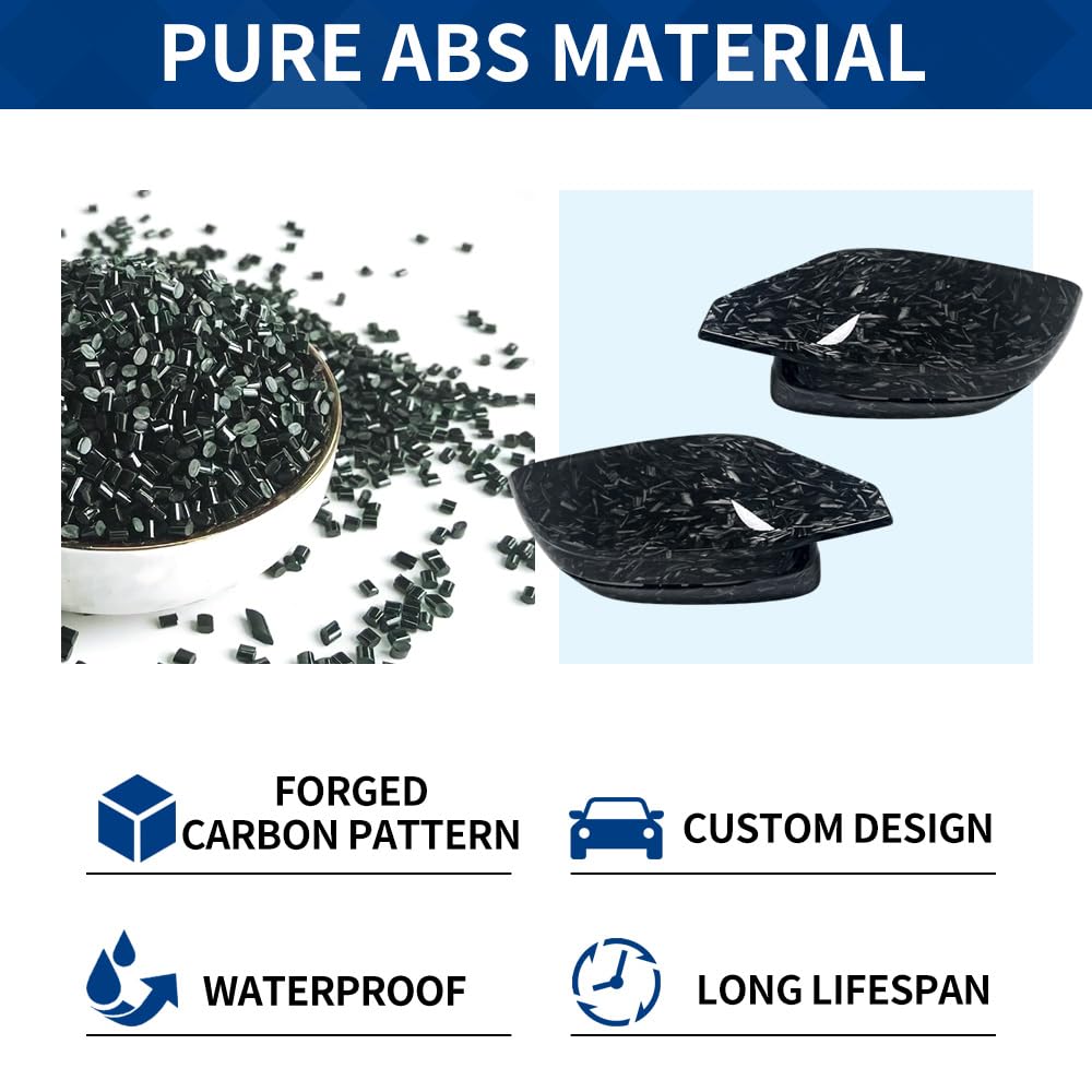 ABS Material with Forged Carbon Fiber Pattern: ABS material is widely used in auto replacement aftermarket. Sleek and modern design that enhances the car's sporty appearance. Vivid forged carbon fiber look on the surface gives it an elegant look