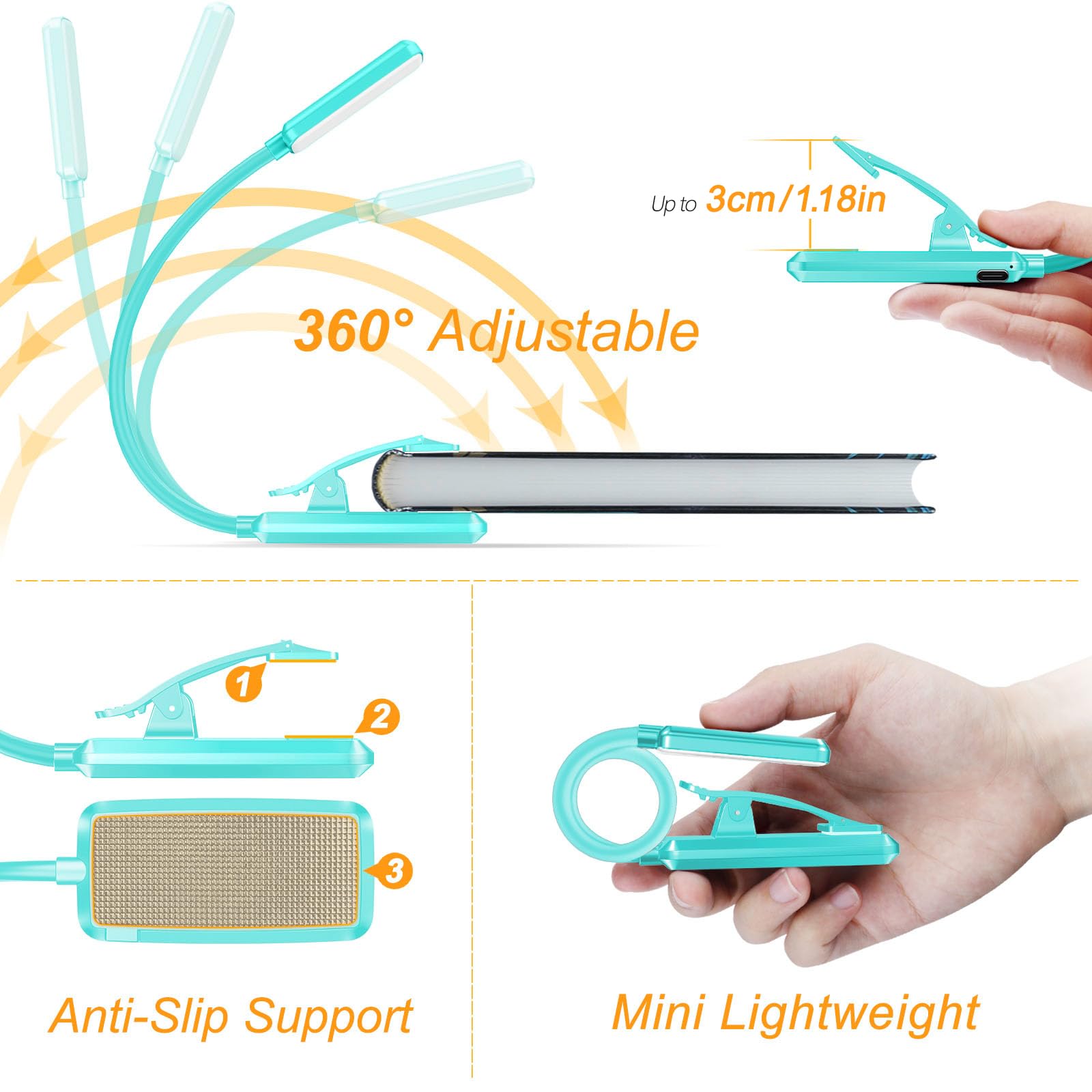 360° Flexible Neck & Sturdy Clip: 360° bendable goose neck can be rotated to any angle you want. Anti-skid clip design makes it firmly clamp on an e-reader, books, shelf, etc