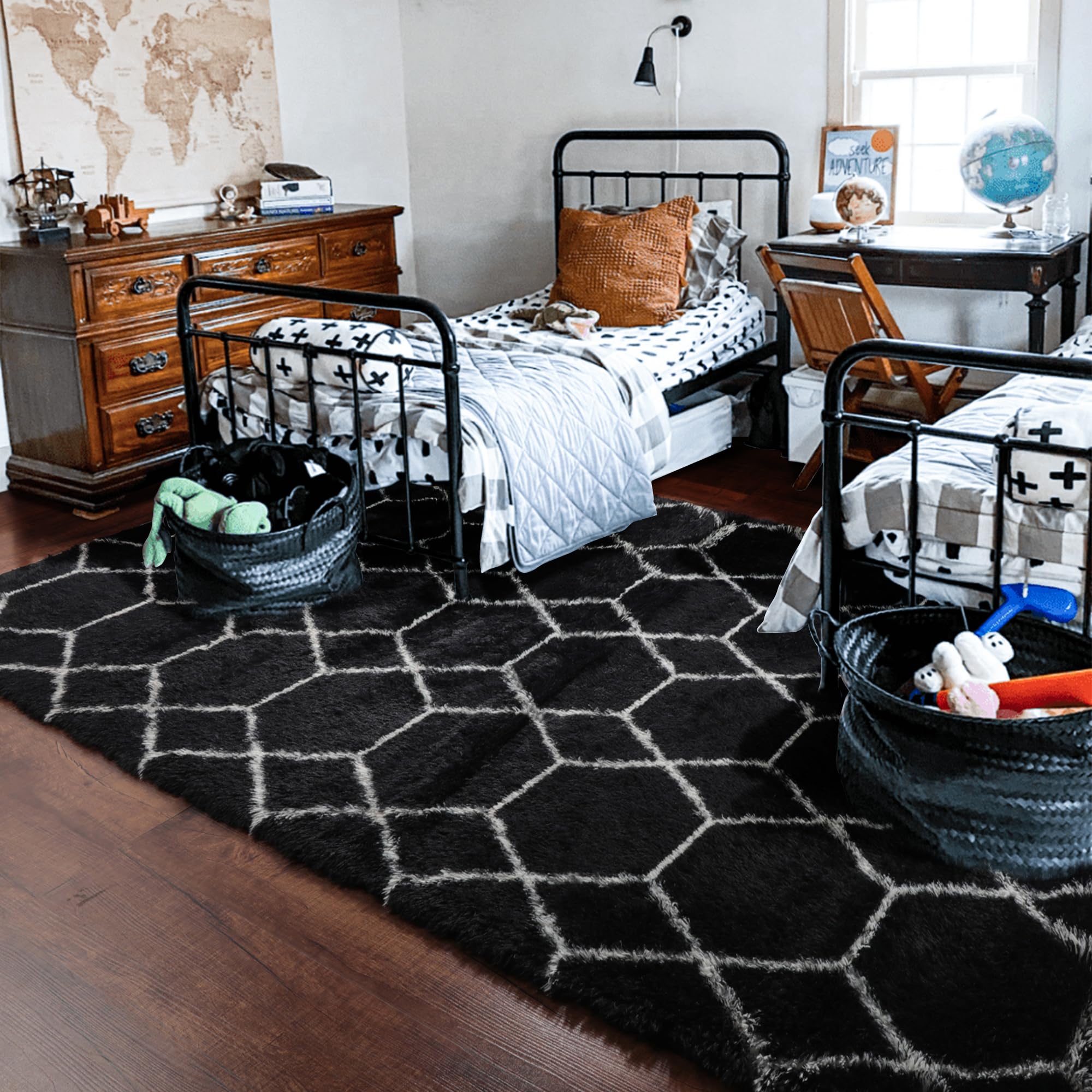 [ Modern Home Decor ]: Decorate your home with the stylish and luxurious geometric rug, and enjoy the comfort and elegance the faux fur rug provides whether in your living room or bedroom. Show off your impeccable taste with this plush room rug. It's perfect for the living room, bedroom, dorm room, nursery, children's room, girl's room, boy's room, playroom, closet, dining room, and home office.