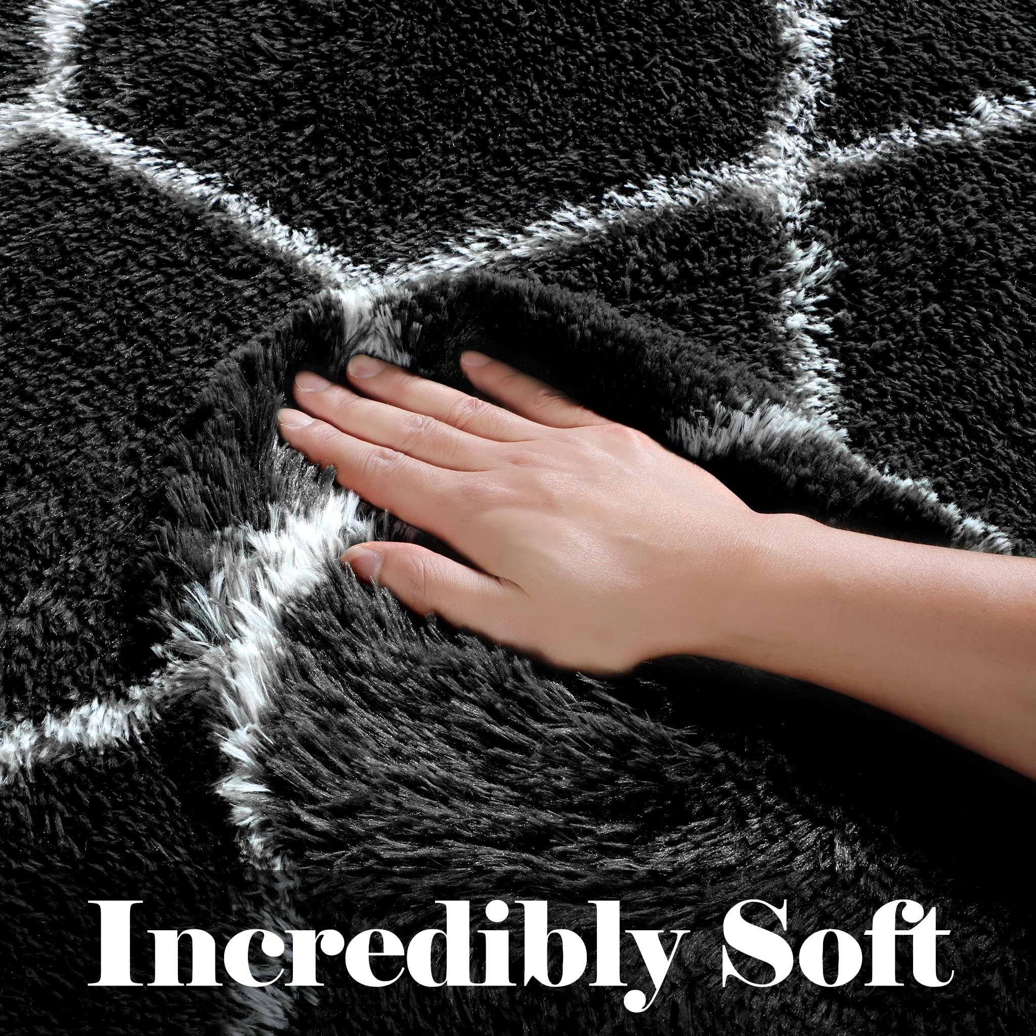 [ Ultra Soft & Skin-friendly ]: The ONASAR area rug is crafted from the plush fiber and upgraded backing, the fluffy area rug is incredibly soft to the touch and provides additional cozy and warmth to your home. They are great for barefoot walking and perfect for tummy time for babies. The rugs are kids and pet-friendly! We own the copyright to this geometric pattern.
