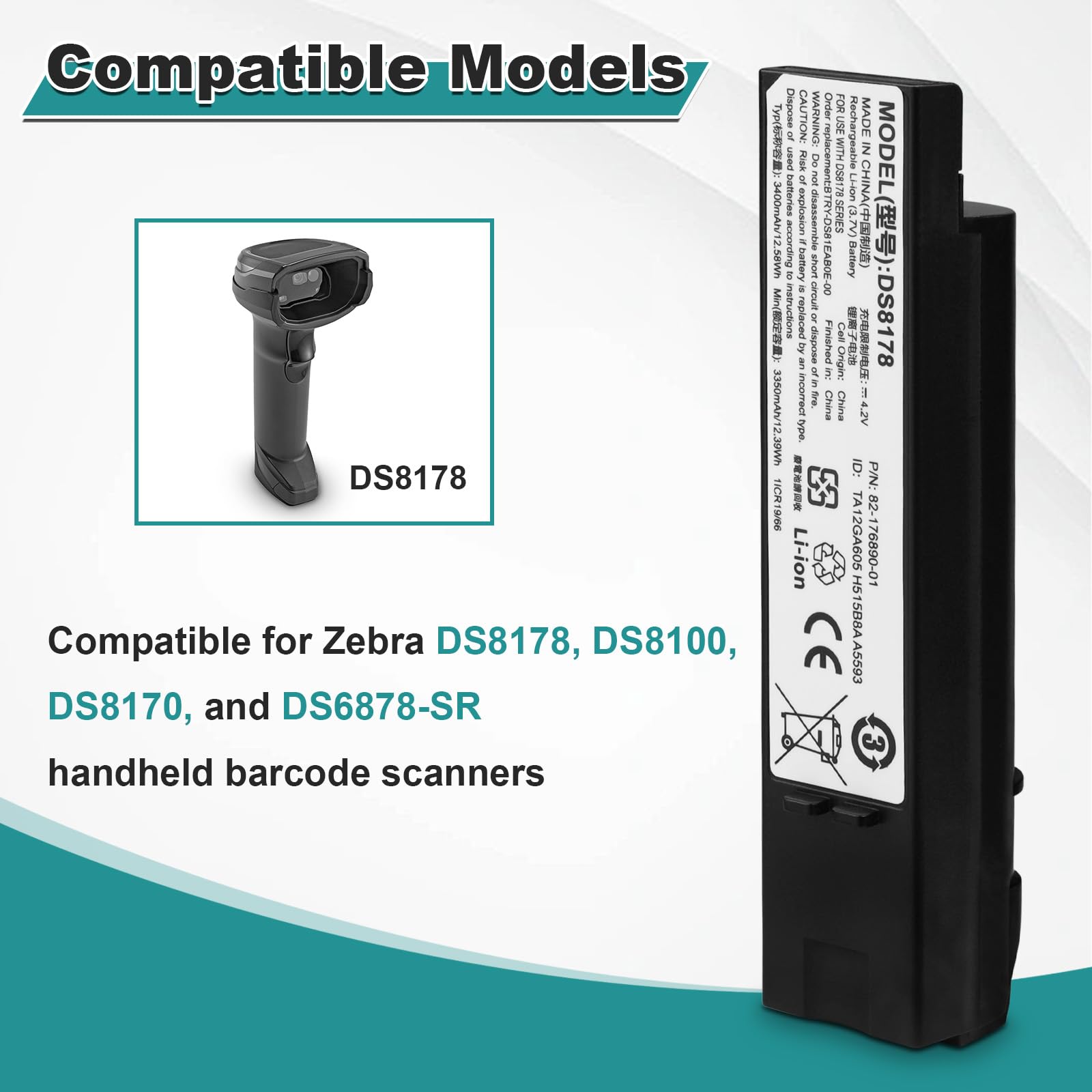 [DS8178 Battery Replacement]: Compatible for Zebra DS8178, DS8100, DS8170, and DS6878-SR handheld barcode scanners