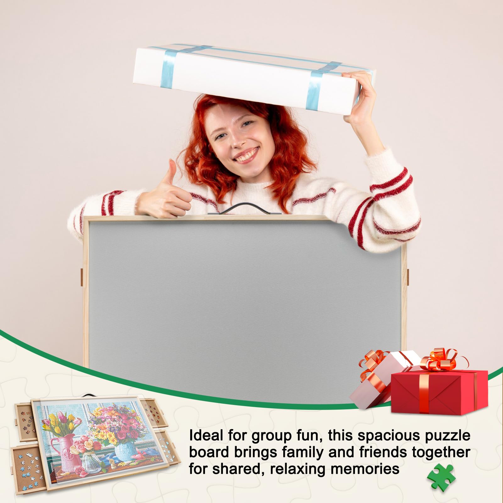 【Organized Storage with 4 Drawers】Four spacious sorting drawers keep your puzzle pieces accessible and secure. When not puzzling, the board doubles as a writing desk, game table, or coffee table, adding versatility to any room