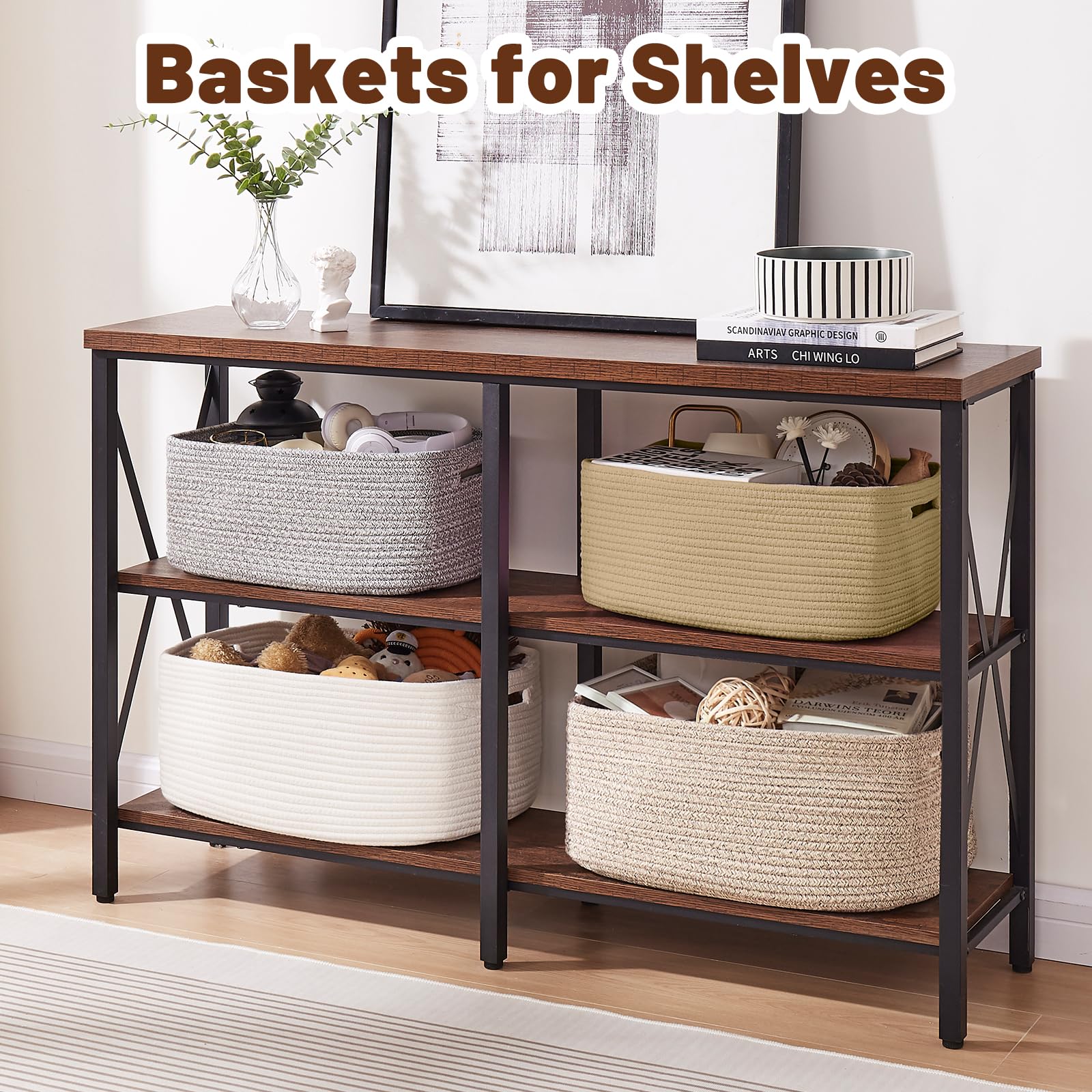 Flexible for Moving: Designed for your convenience, each large basket has two cut-out handles, perfect for picking up toys or carrying items around the house. In the recreation room, game room, pet room, living room, bedroom, nursery, bathroom, laundry, pantry, pantry, craft room, home office and even garage, you can enjoy the flexibility and convenience by the woven baskets and make life full of possibilities