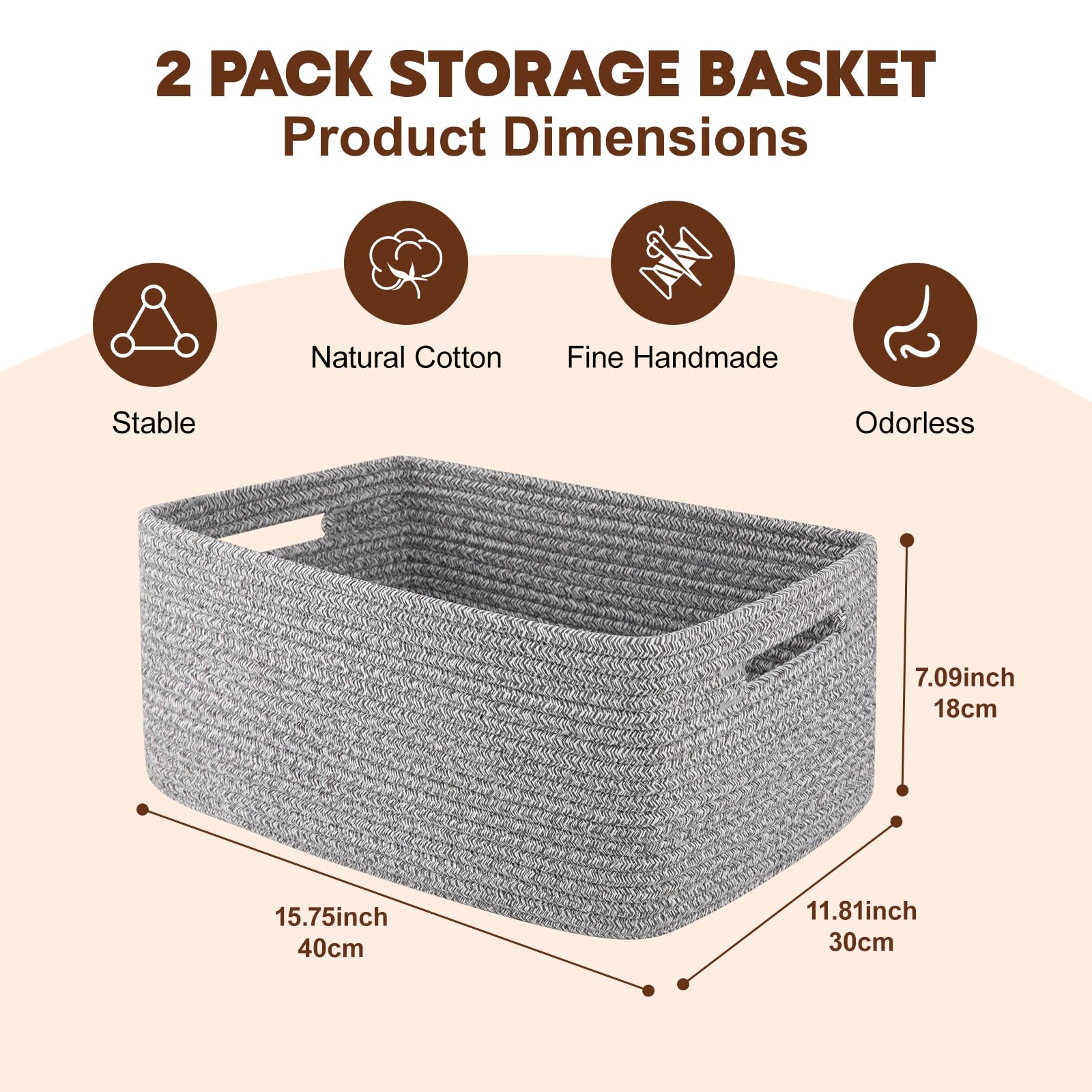 Large Capacity:15.75*11.81*7.09inches. This 2-pack rectangular baskets for organizing is the perfect "treasure chest" for household essentials. Such as books, knick-knacks, wallets, keys, sunglasses, crafts, stationery, gadgets, towels,clothes, socks and so on. You can get it easily just by moving your fingers