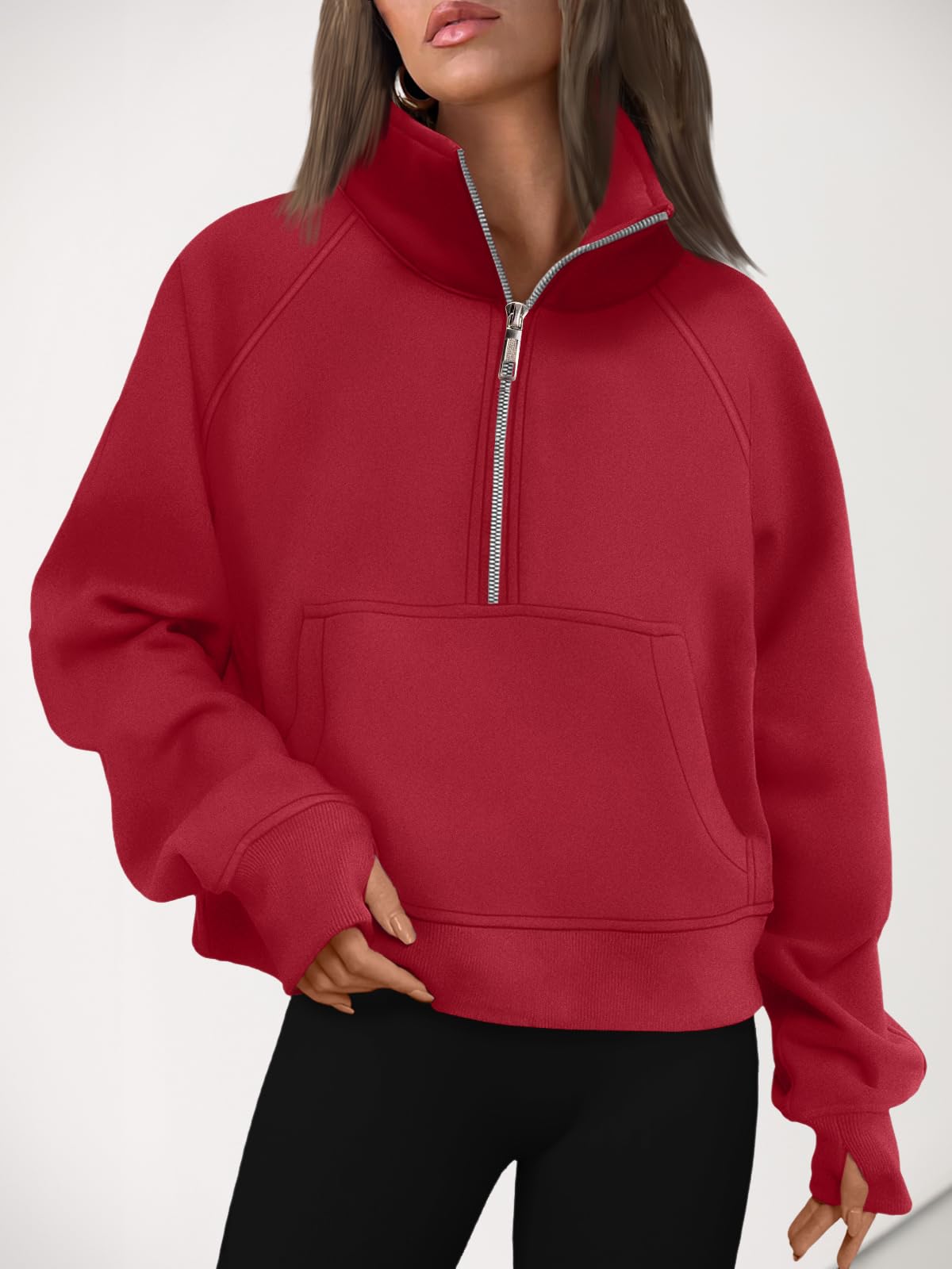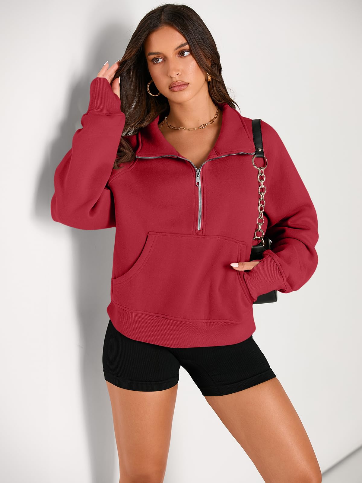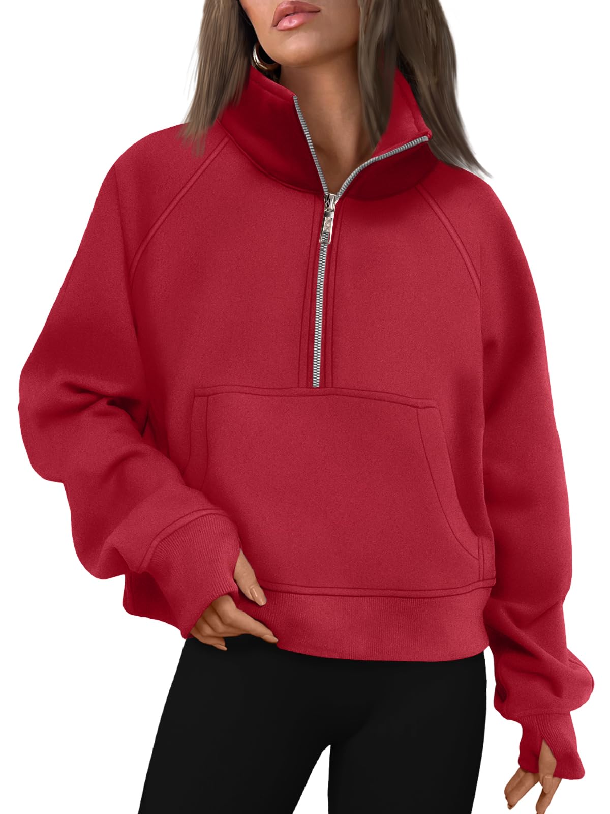 ★Fashion: 1/2 zip up collar sweatshirt, the zipper works smoothly, solid color, stand collar, y2k clothing, fleece lined, soft inside, relaxed fit, crop top