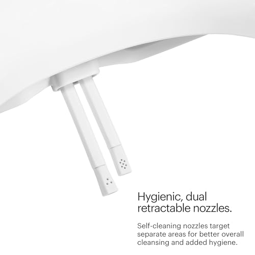 HIGH-QUALITY PARTS: Enjoy dual nozzles for rear and front washes, a gentle closing seat, and sturdy, sittable lid.