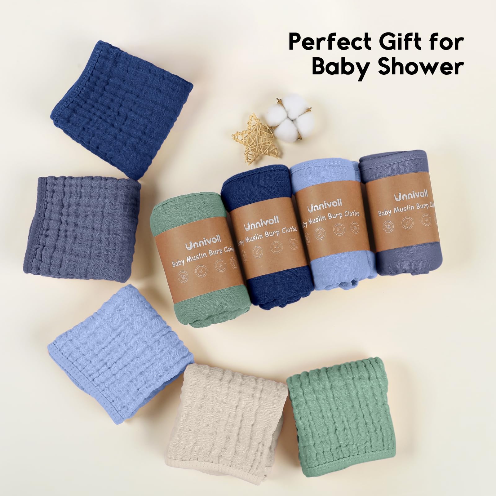 Safety Comes First: Made from 100% premium quality cotton,Unnivoll muslin burp cloths is certified to meet Consumer Product Safety Commission (CPSC) guidelines, eliminate all potential risks and provide a soft, breathable, cloud like comfort for your little one. The natural muslin is also suitable for all skin types including sensitive and delicate skin, perfectly use on the face, hand and body.