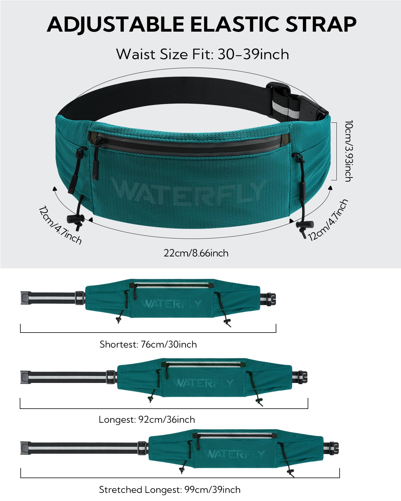 Quick Adjustable Waist Strap: The 0.2 lb running pack features an elastic band that allows for quick length adjustments and fits waists from 30" to 39". The highly elastic, dense, and thick band provides a snug fit that reduces bounce, ensuring comfort during long runs